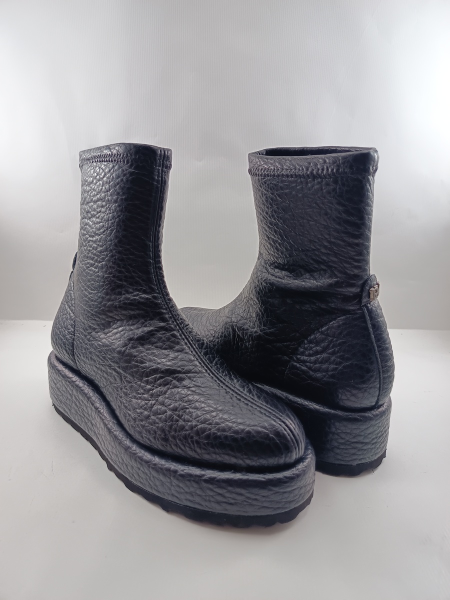 Bota de piel negra sin cierres y suela de goma con cuña de 2, forro y plantilla textil.