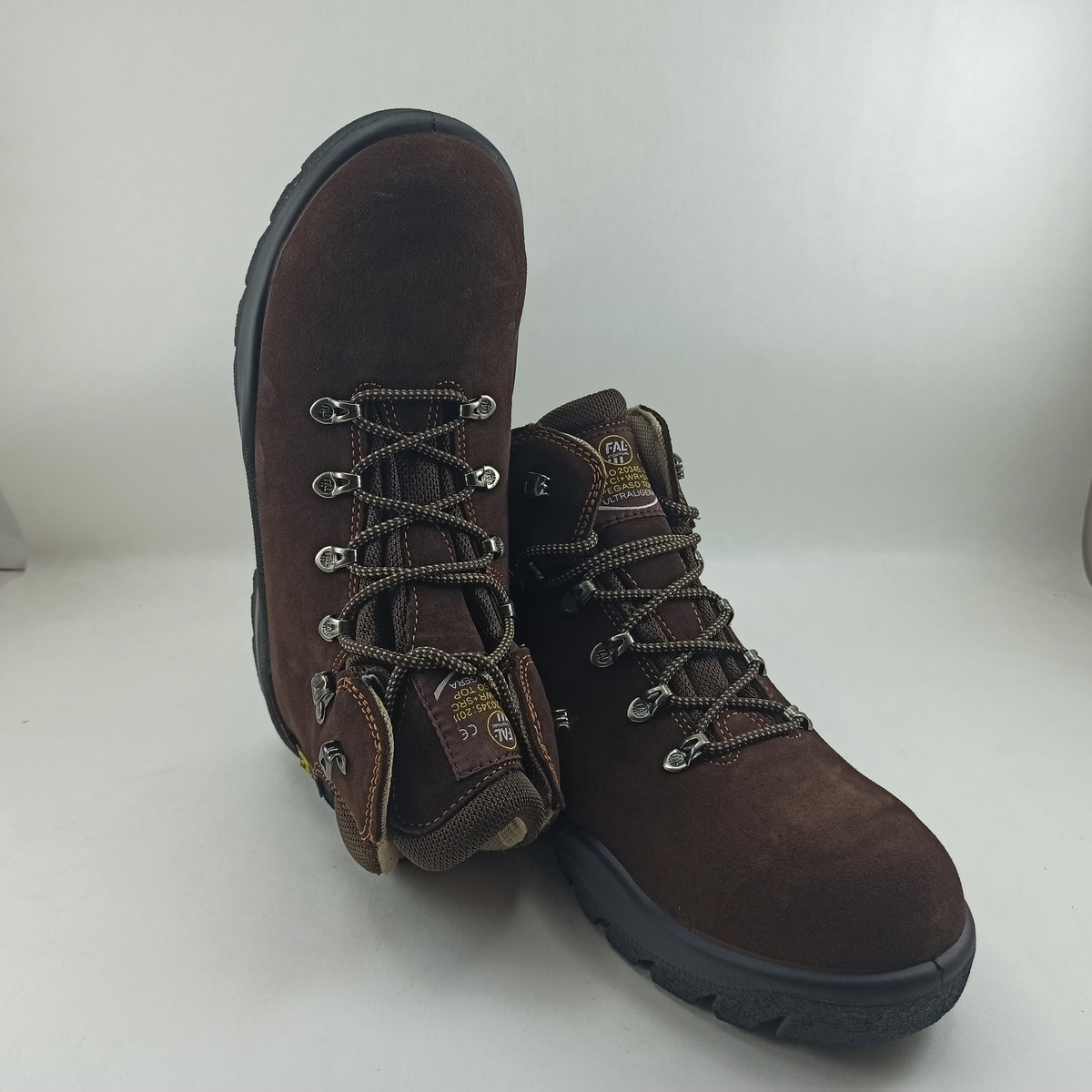 Bota treaking de piel verde con cierre de cordon elastico y suela de goma, forro y plantilla textil, detalle de cordon con rueda.