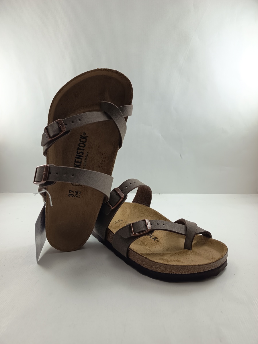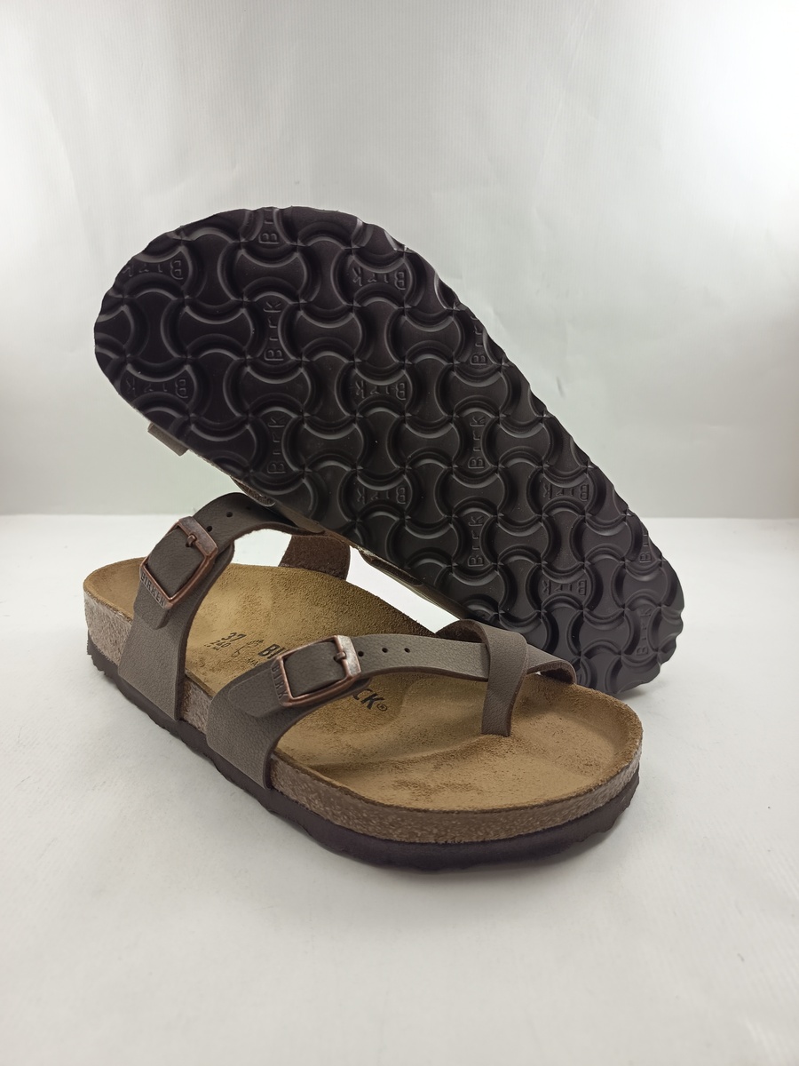 Chancla de dedo en piel marron con cierre de doble hebilla, Birkenstock mod. Mayari