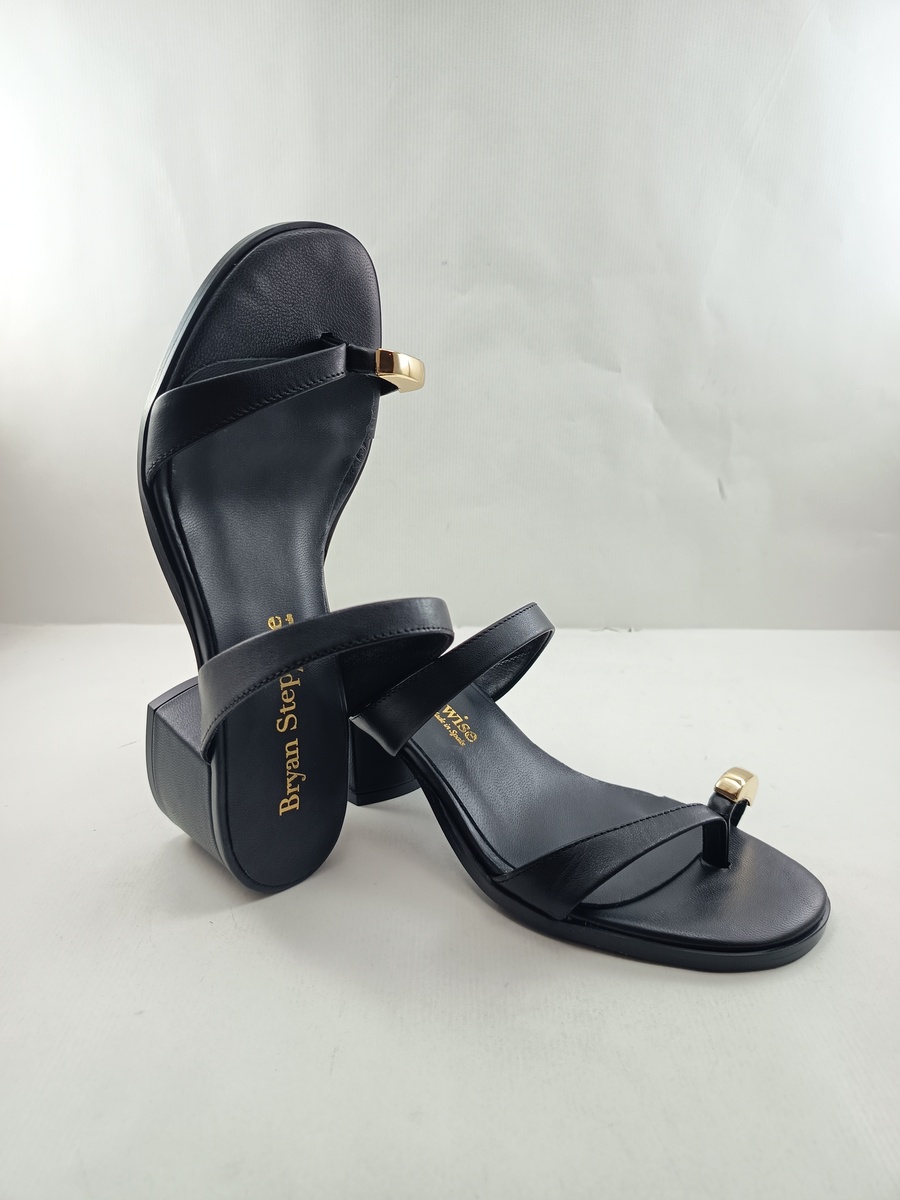 Chancla de piel negra con tiras en dedos y empeine, Bryan footwear mod. 2617