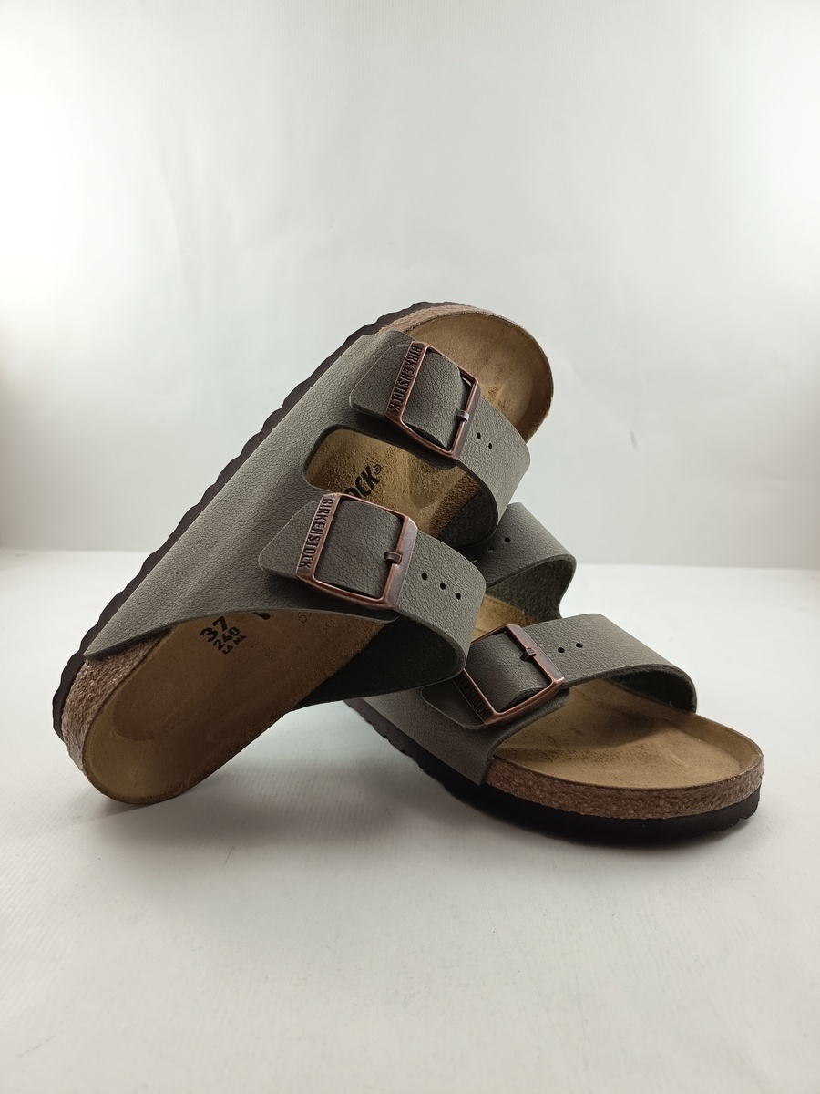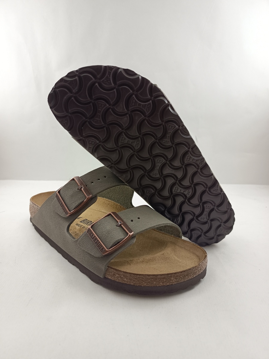 Chancla de piel verde con cierre de doble hebilla, Birkenstock mod. Arizona