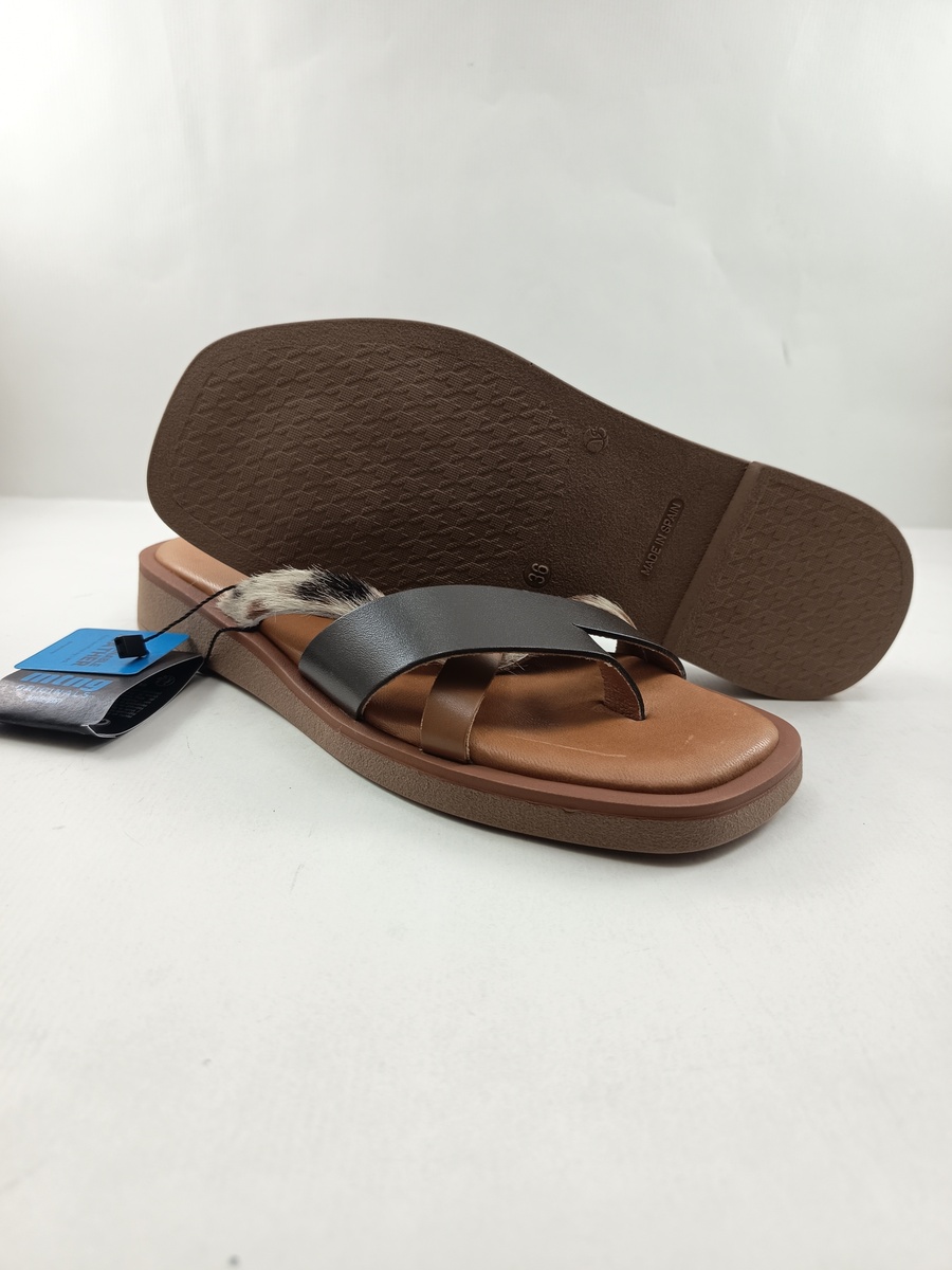 Chancla sintetica multicolor sin cierres y suela de goma, forro y plantilla de piel, detalle de tiras cruzadas en empeine.