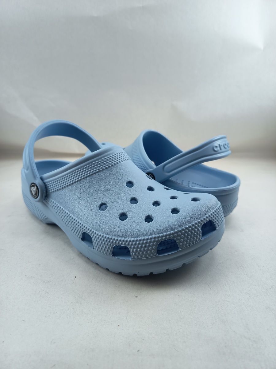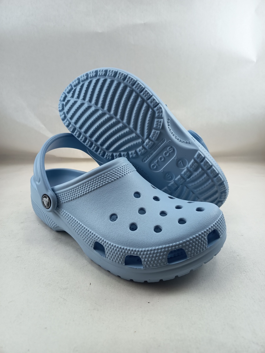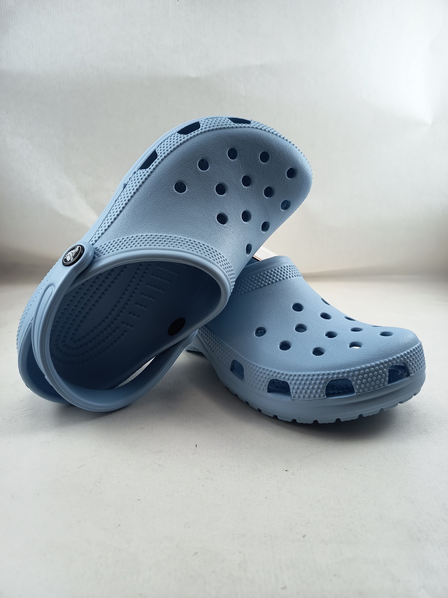 Croc classic azul calcite sin cierres y suela de goma, con tira trasera.