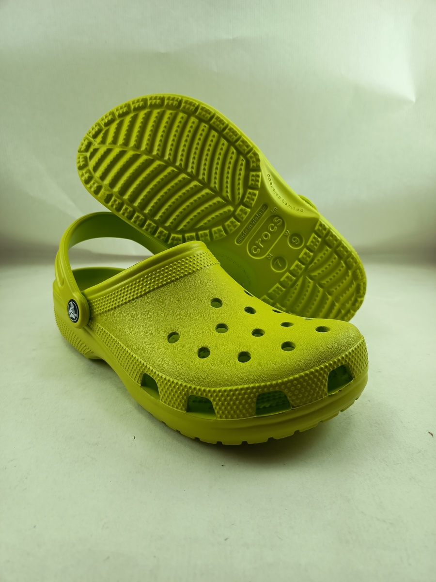 Croc classic kiwi sin cierres y suela de goma, con tira trasera.