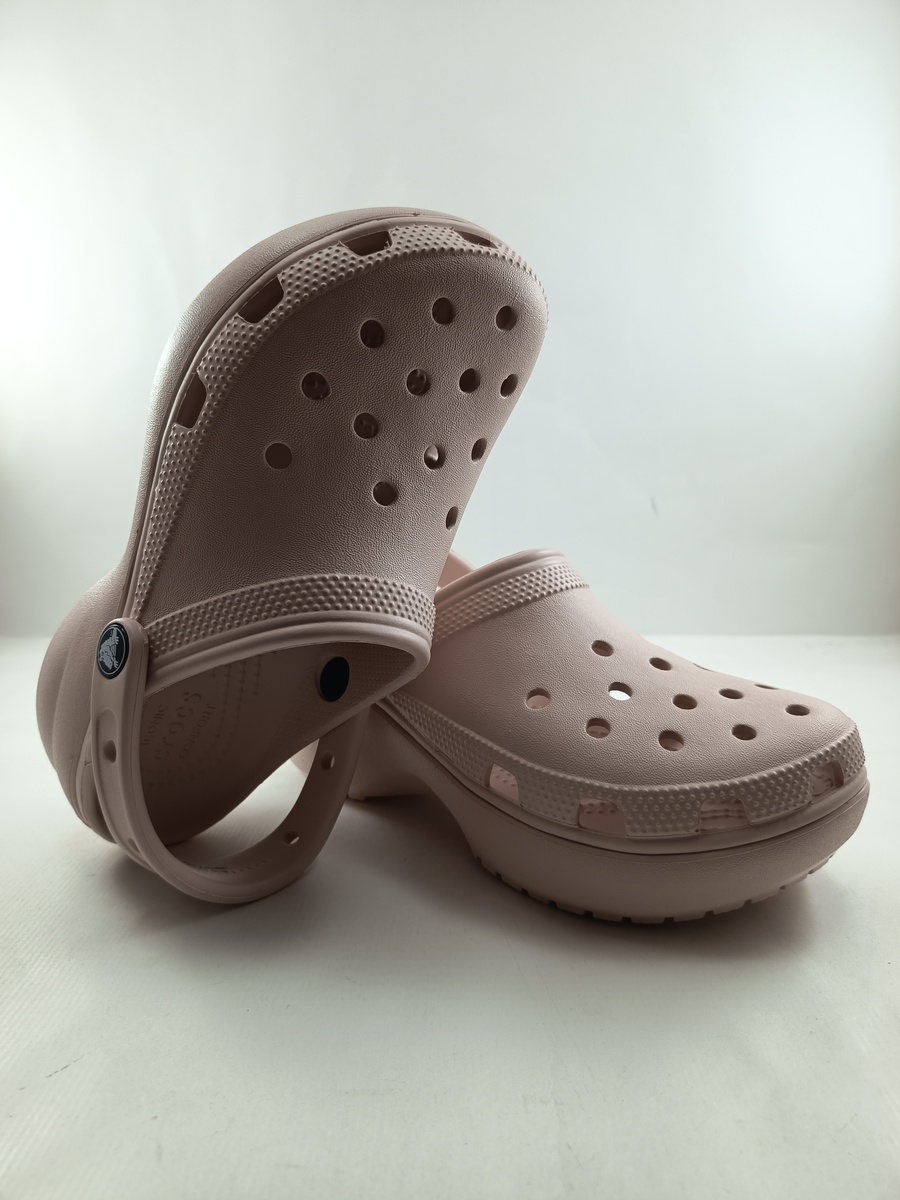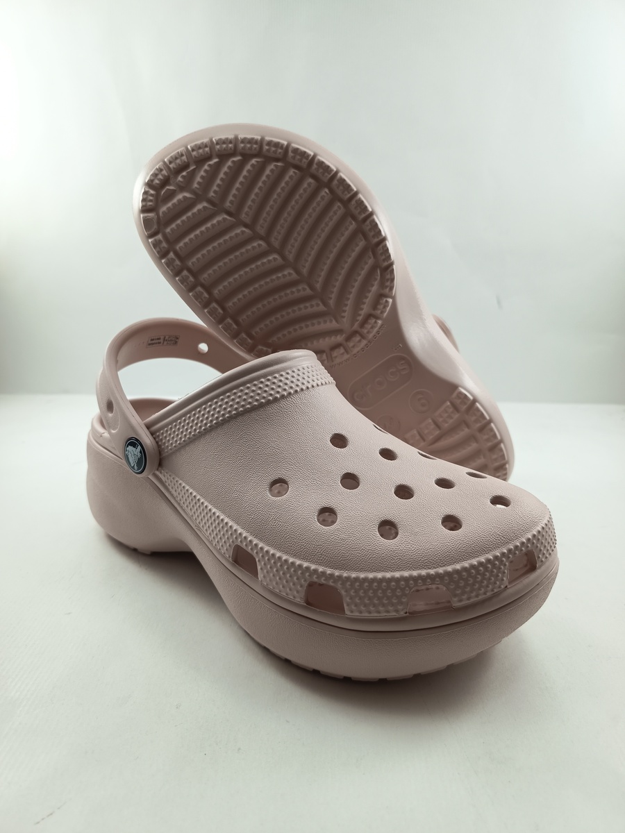 Croc classico con plataforma rosa palo sin cierres y tira trasera.