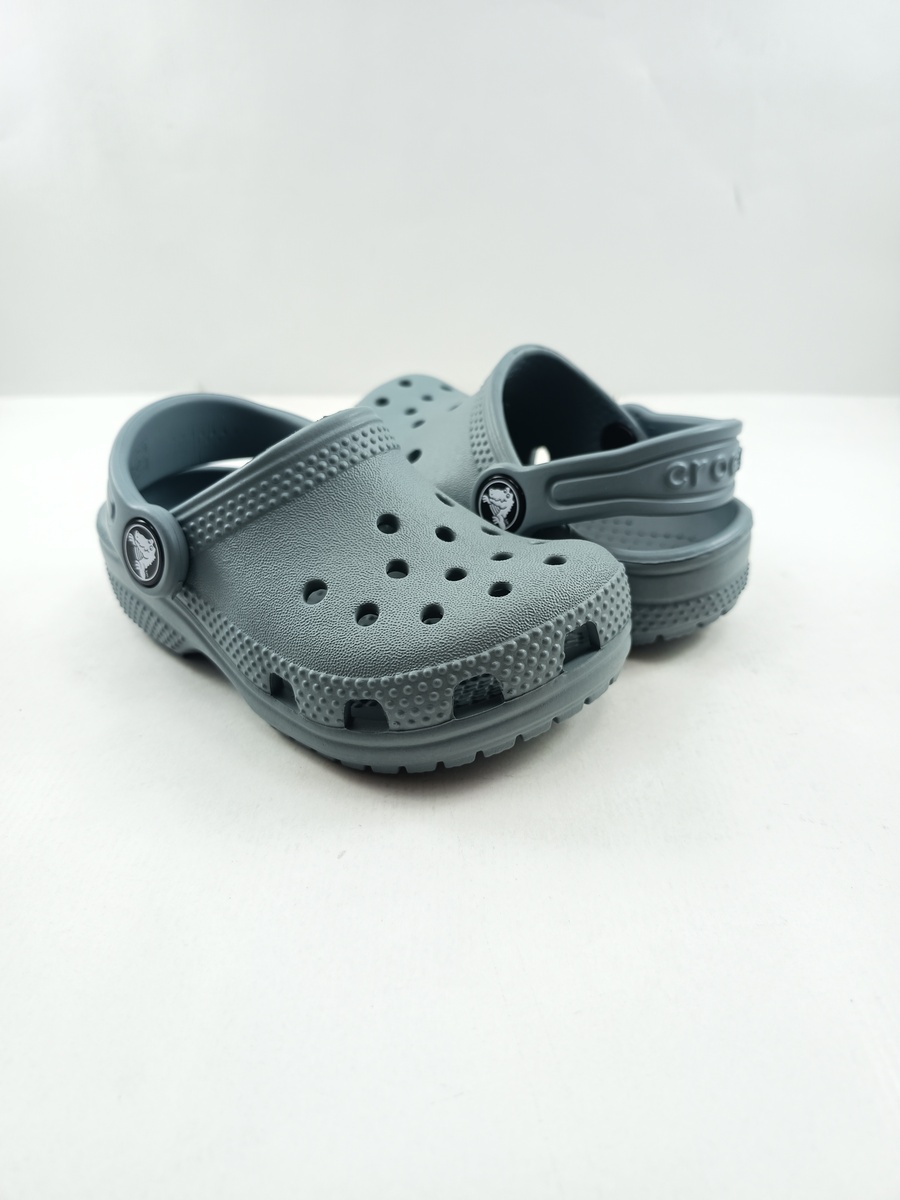Croc classico gris sin cierres y tira trasera.
