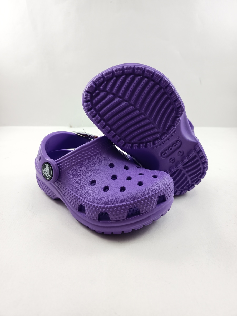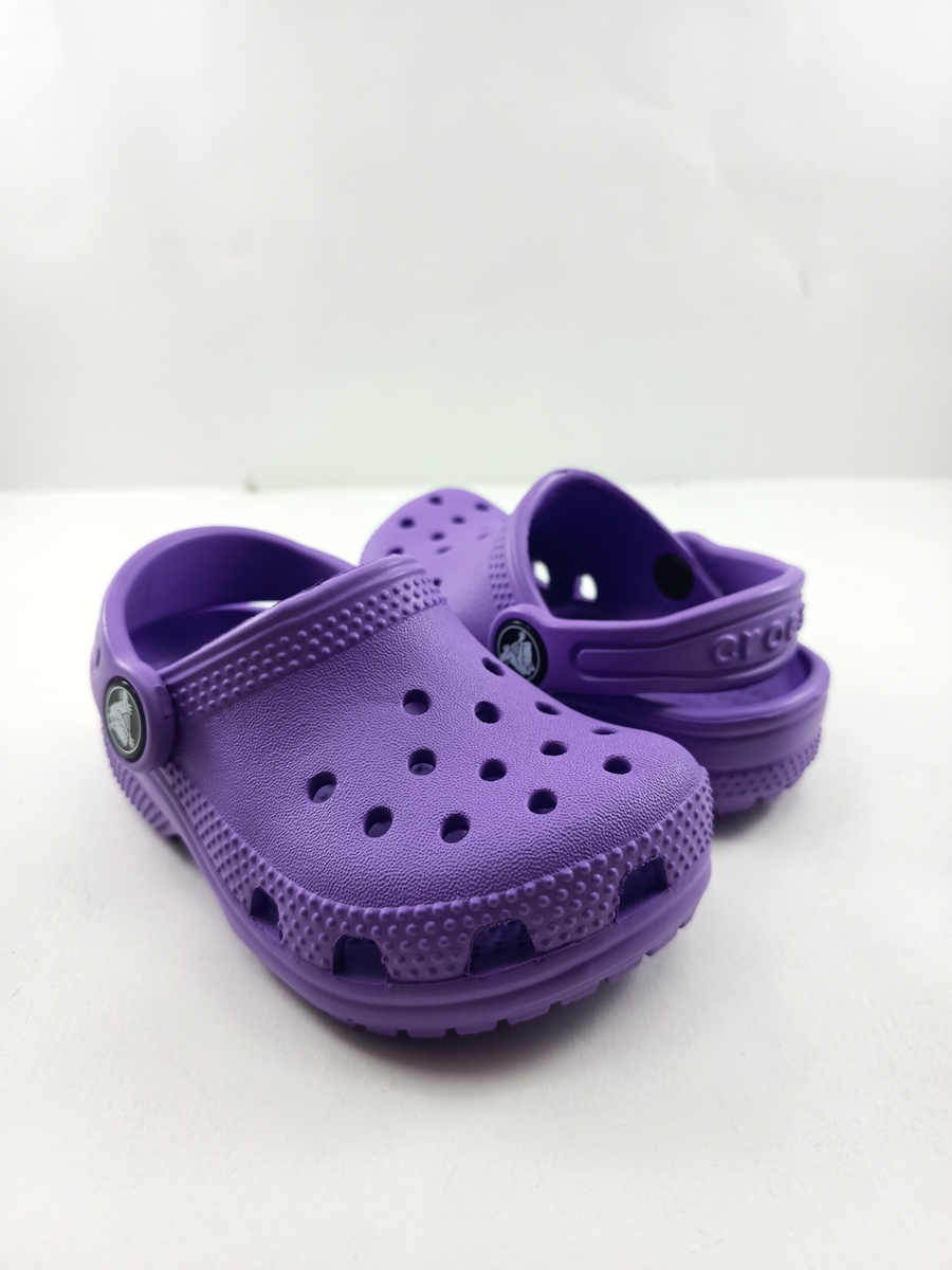 Croc classiico lila sin cierres y tira trasera.