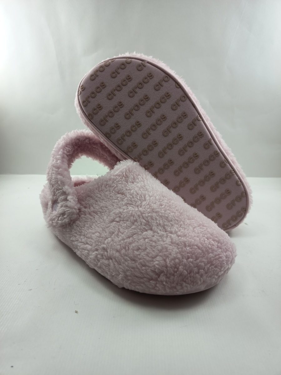 Croc cozzzy rosa sin cierres y tira trasera, suela de goma, detalle de borreguito en todo el.