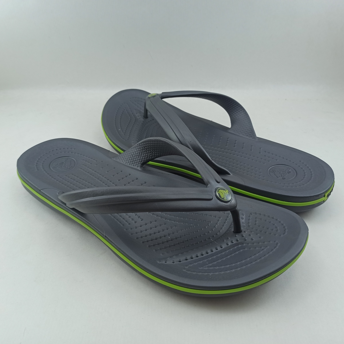 croc de hombre tipo chancla color gris con franja verde. Modelo 11033