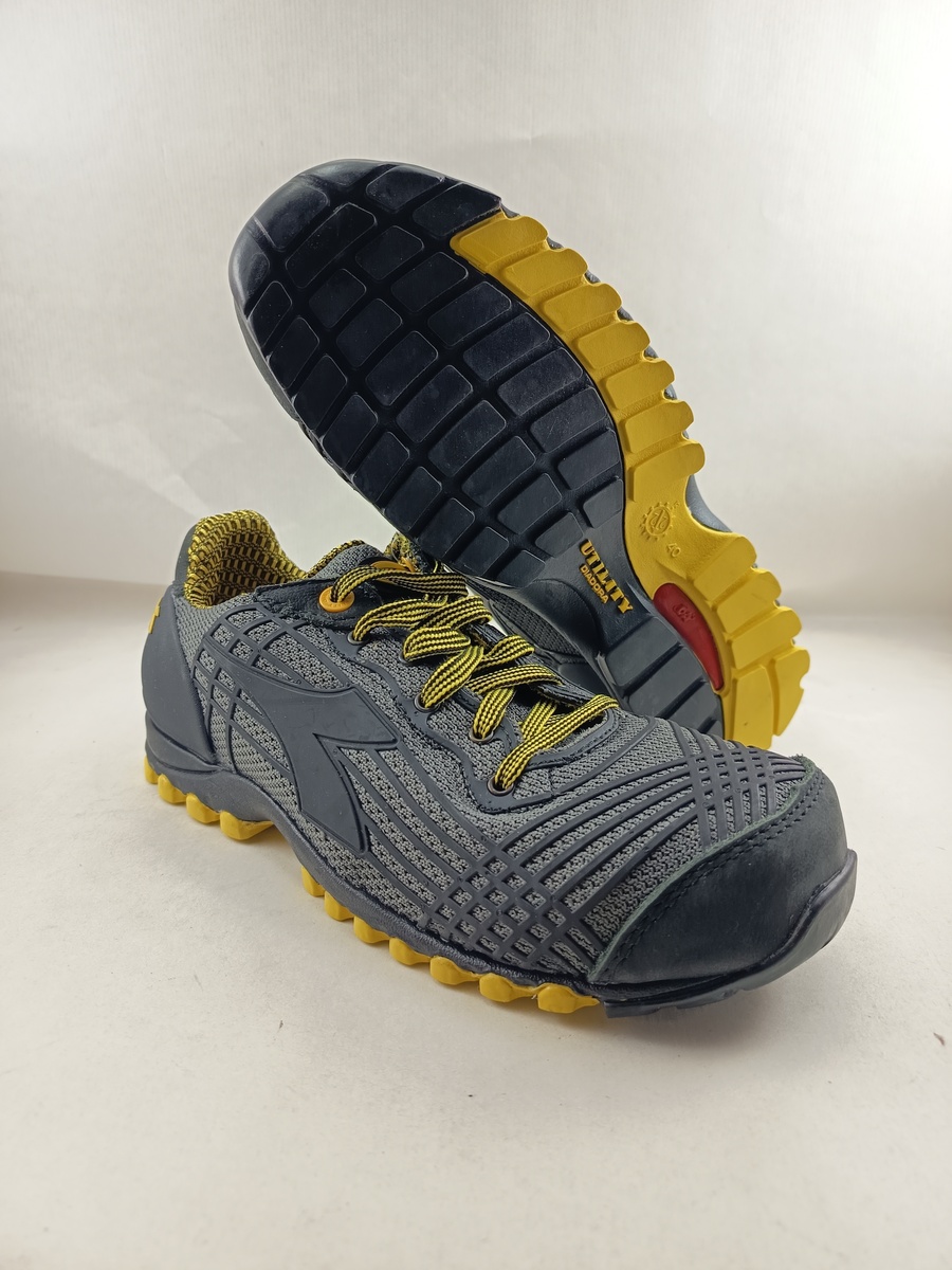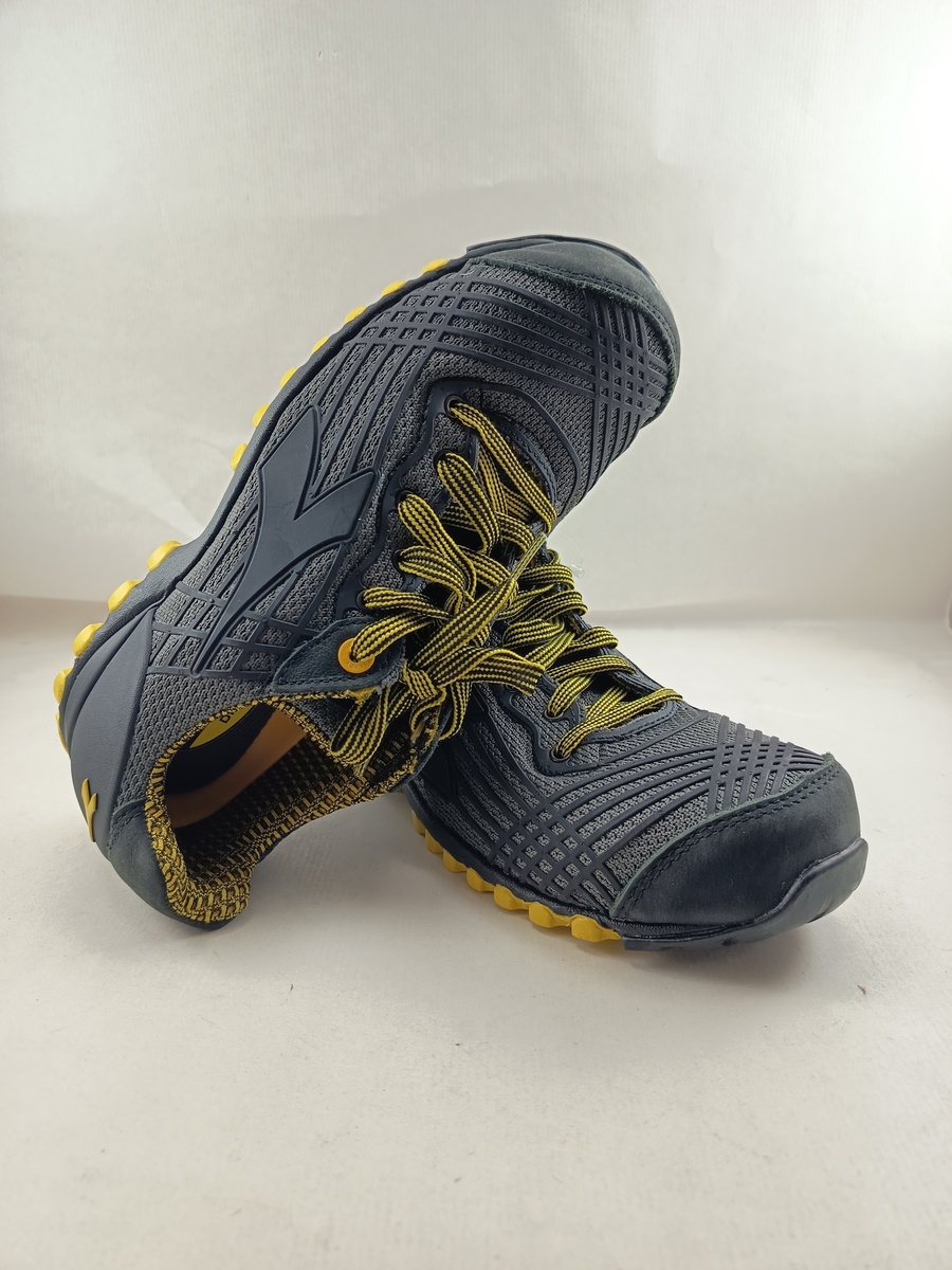 calzado de seguridad bajo S1P, tejido de poliester sobreinyectado de poliuretano termoplástico, con puntera de aluminio 200j. highlight, forro air mesh bicolor de resistencia elevada e inserción double action, plantilla extraible de látex y carbón activo y talonera de eva.