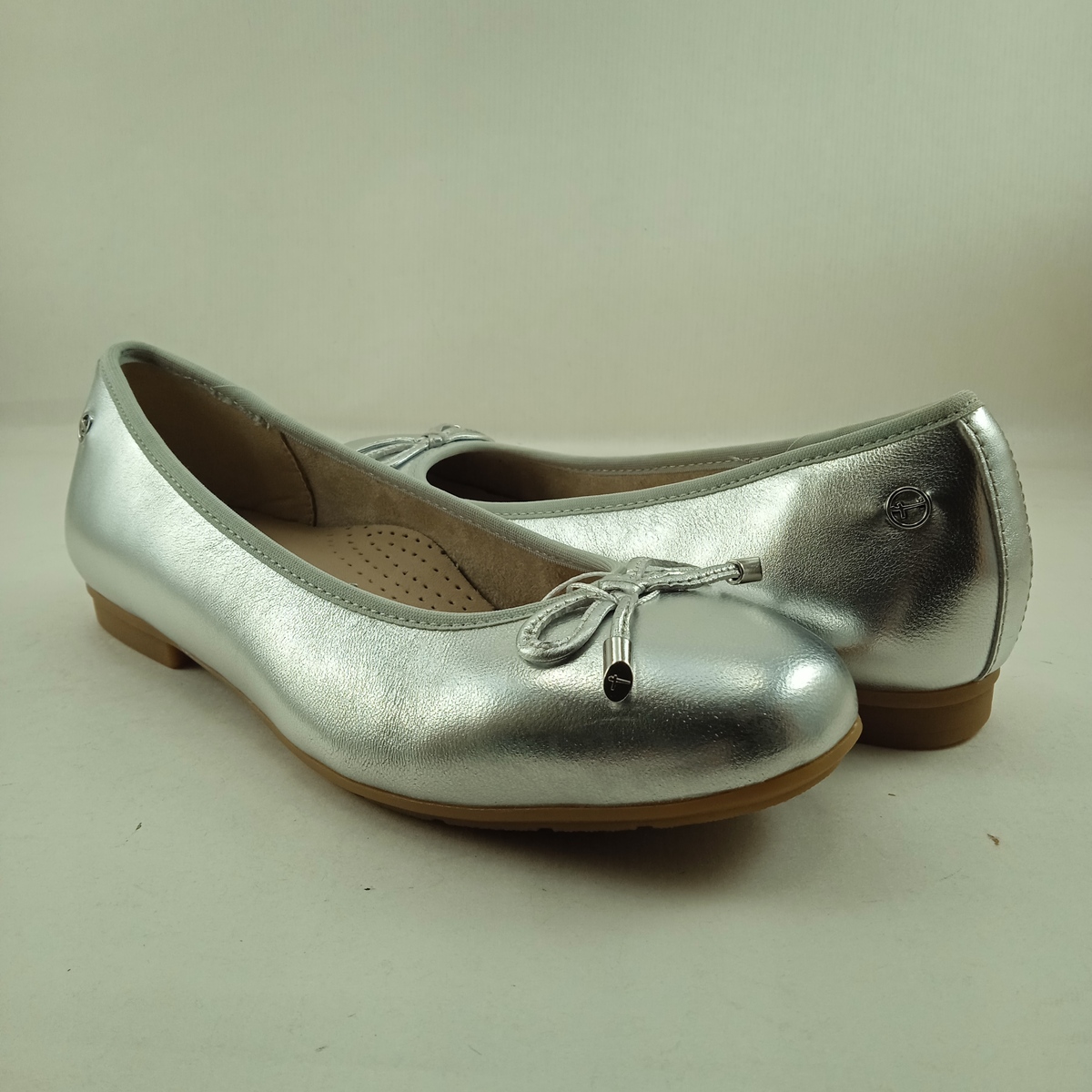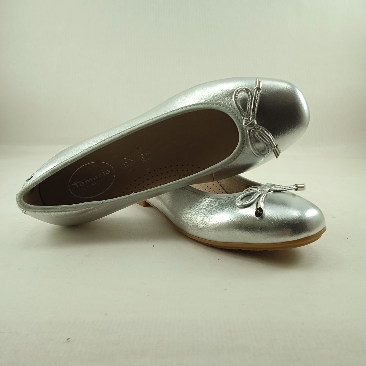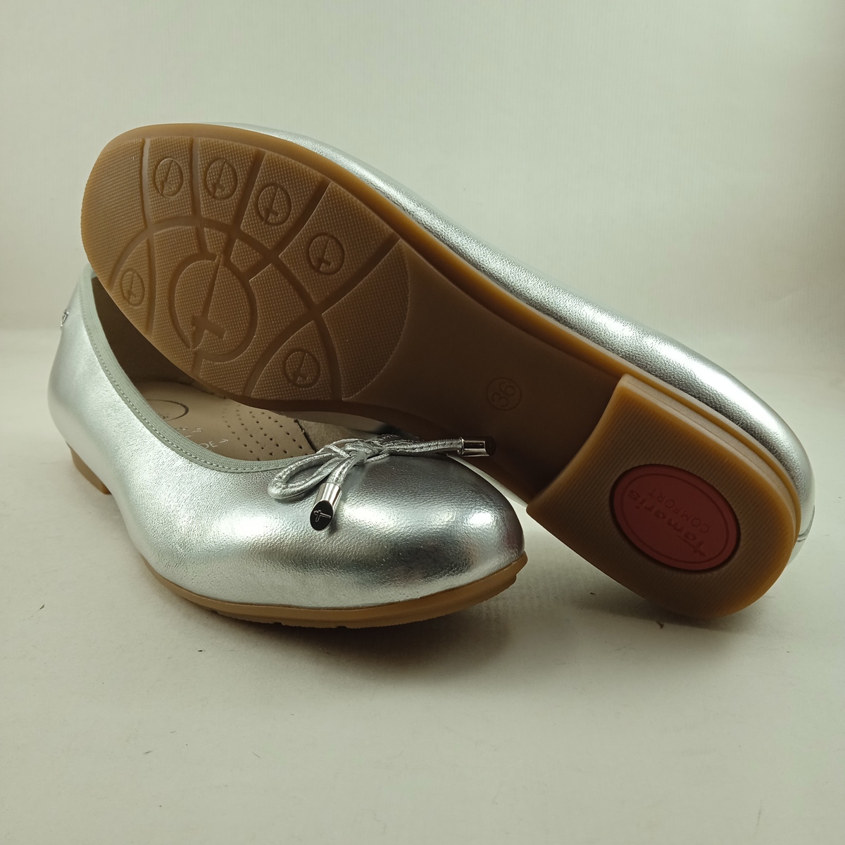 Manoletina de piel plata sin cierres, Tamaris confort mod.82102