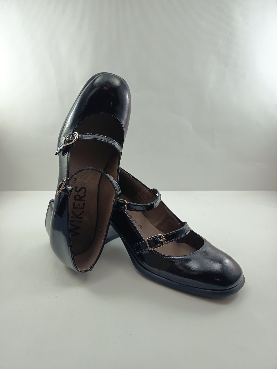 Mercedes de charol negro con cierre de hebillas, Wikers mod. Q-226