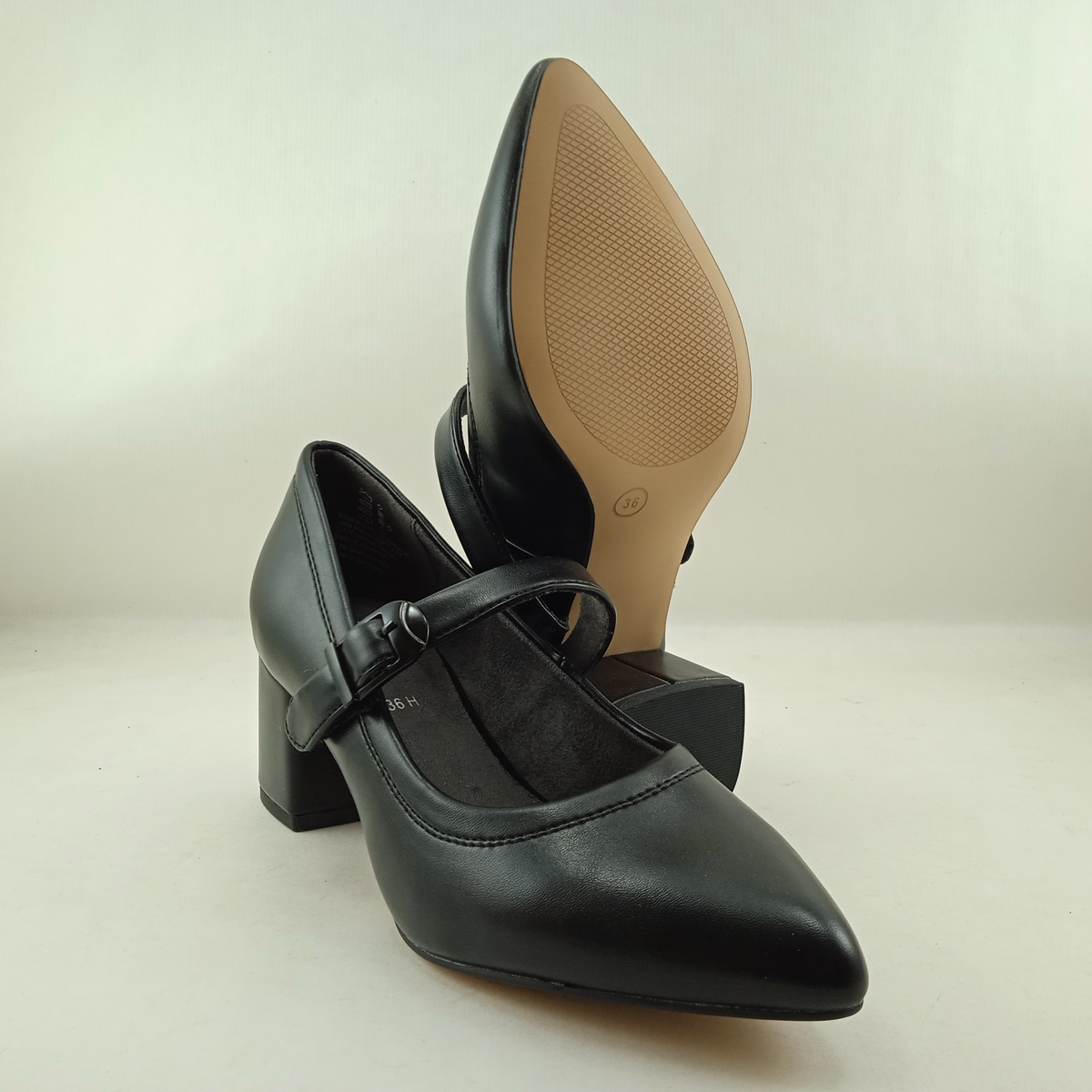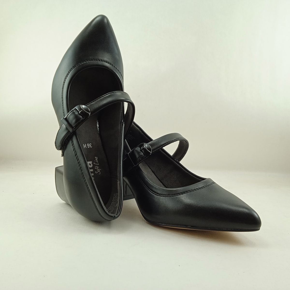 Mercedes piel negra con cierre de hebillla en empeine, Jana mod.24466