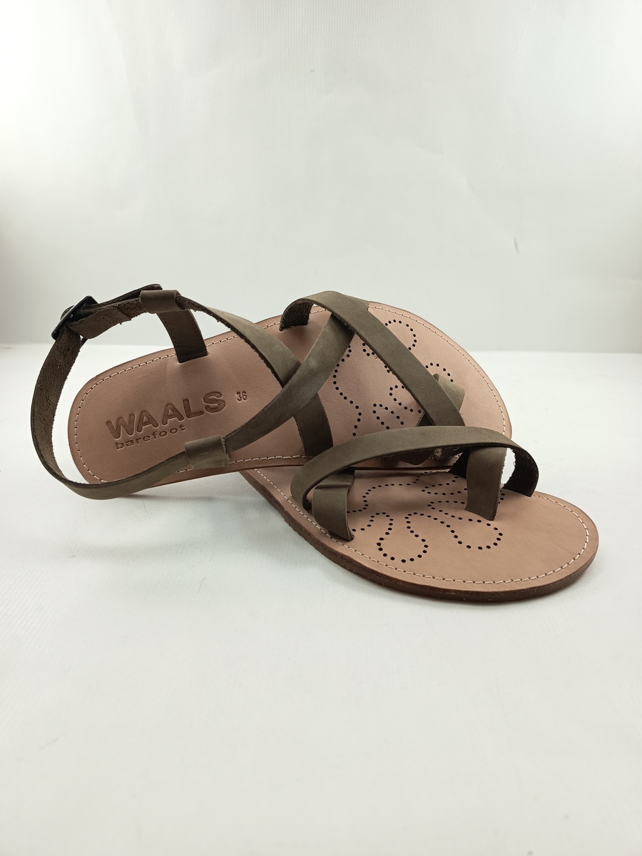 Sandalia barefoot de piel verde con cierre de hebilla, Waals barefoot mod. Natur