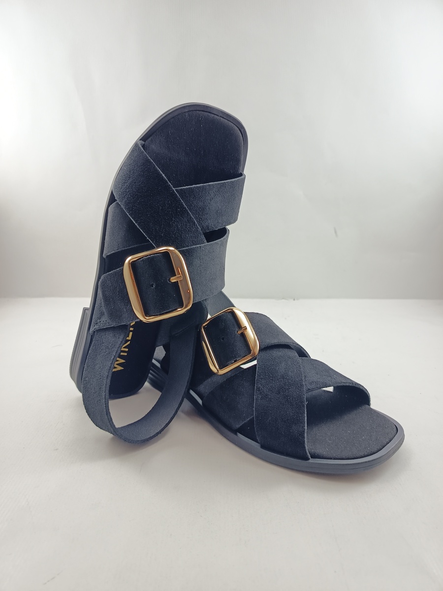 Sandalia de ante negro con cierre de hebilla, Wickers mod. 162854