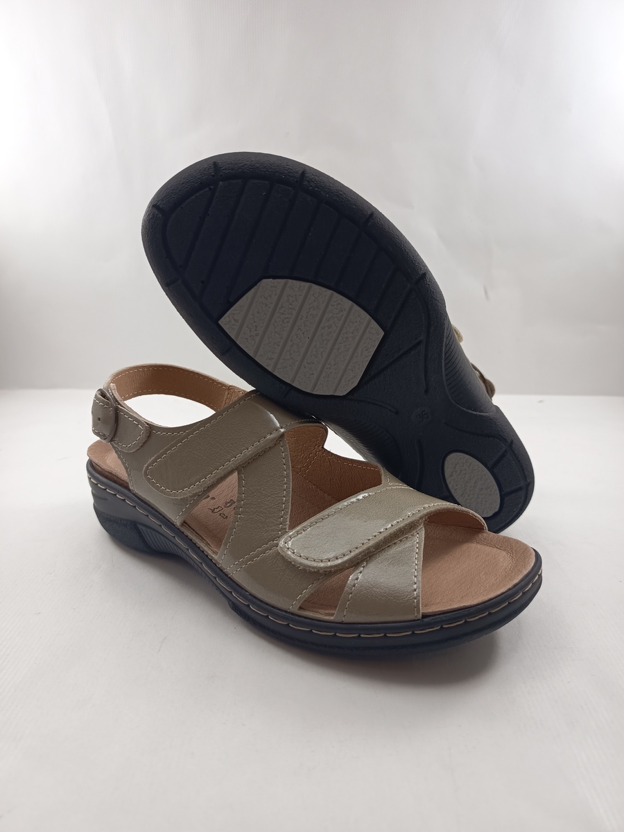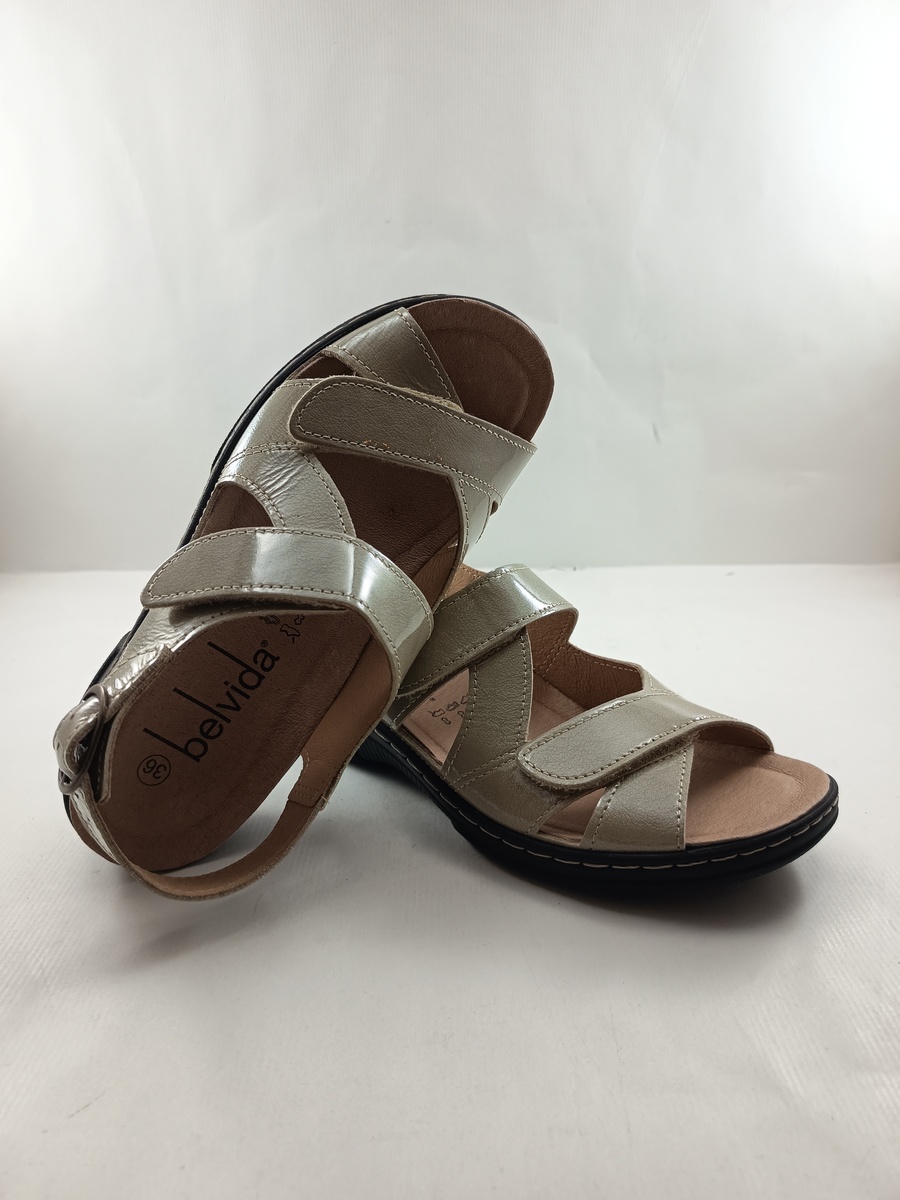Sandalia de charol beig con cierre de velcro, Belvida mod. 31007