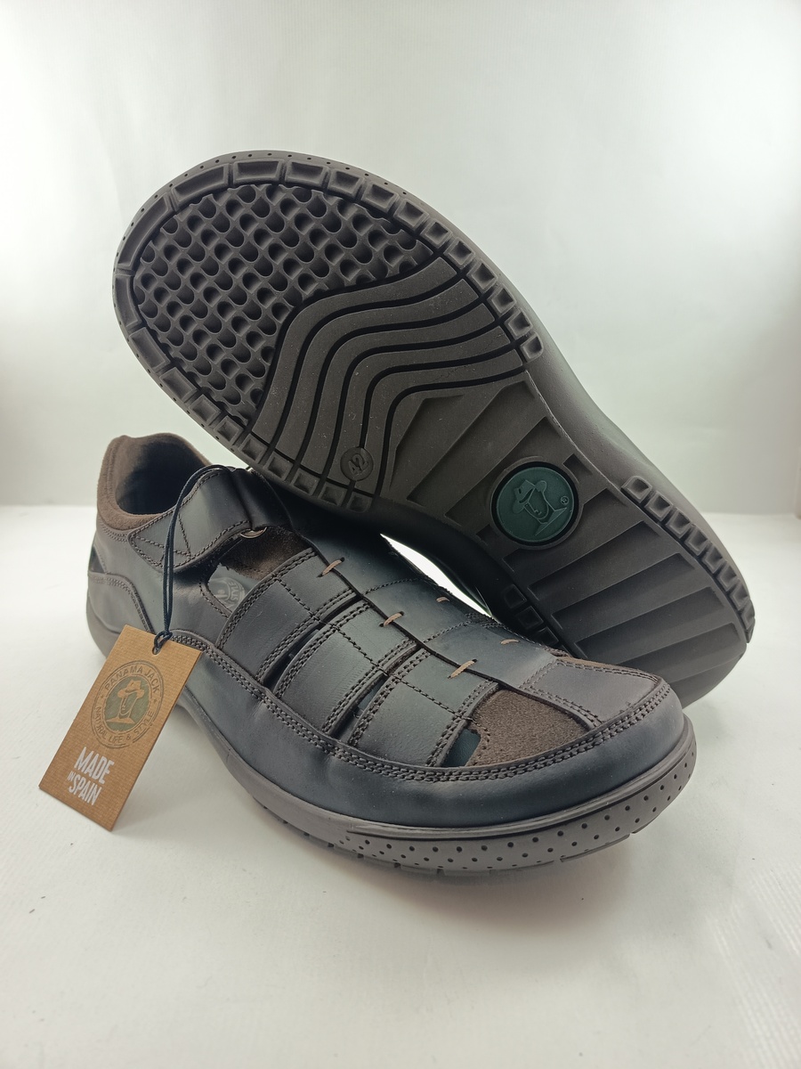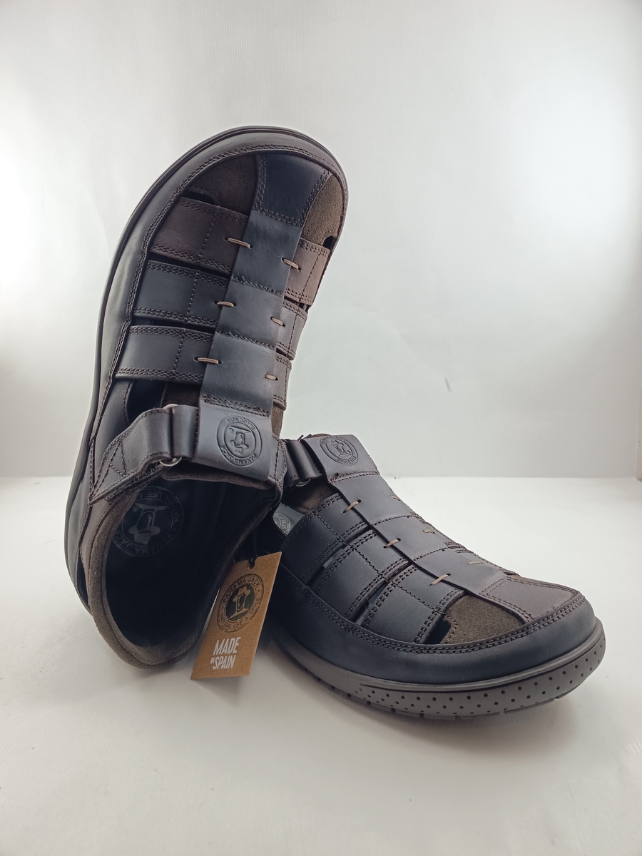 Sandalia de cortes en piel marron con cierre de velcro, Panama jack mod. Meridian