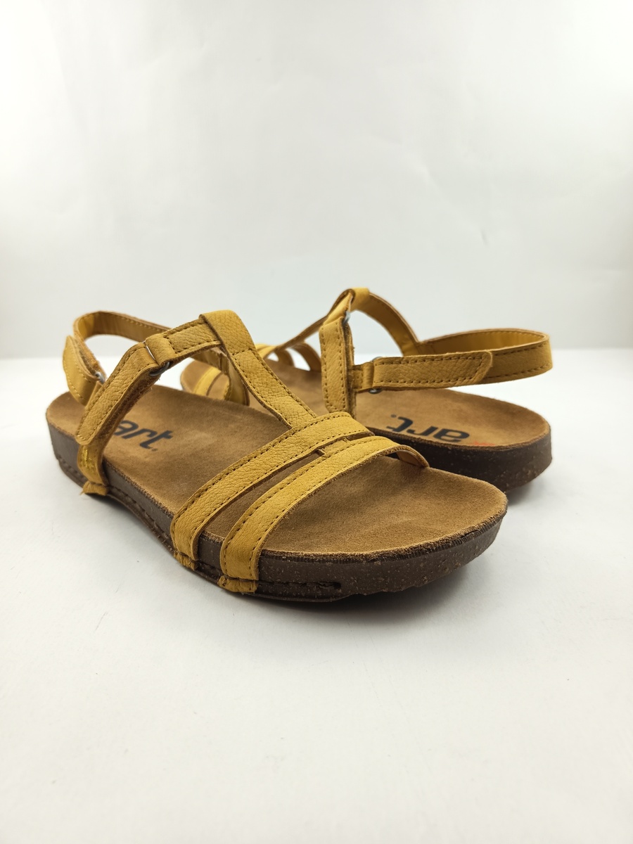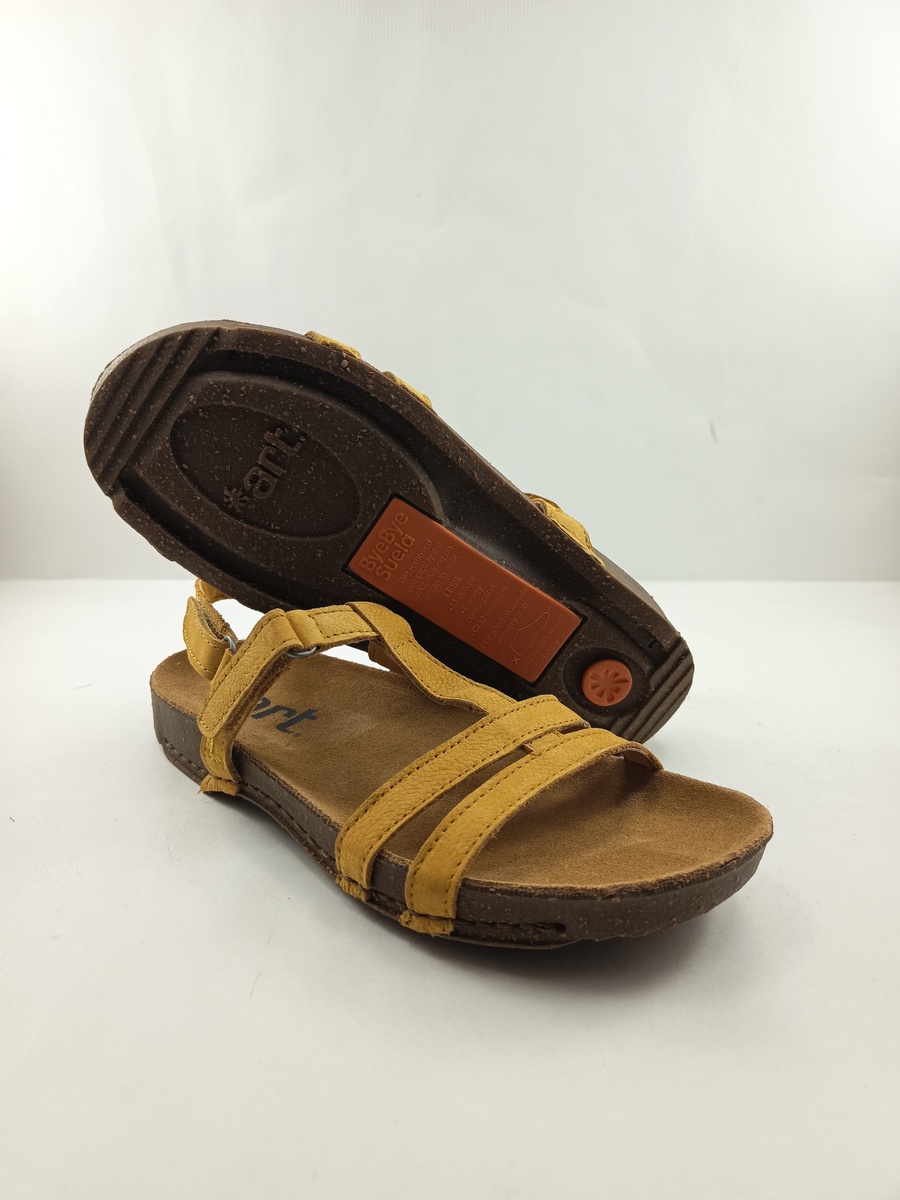 Sandalia de piel amarilla con cierre de velcro, Art mod. 0946