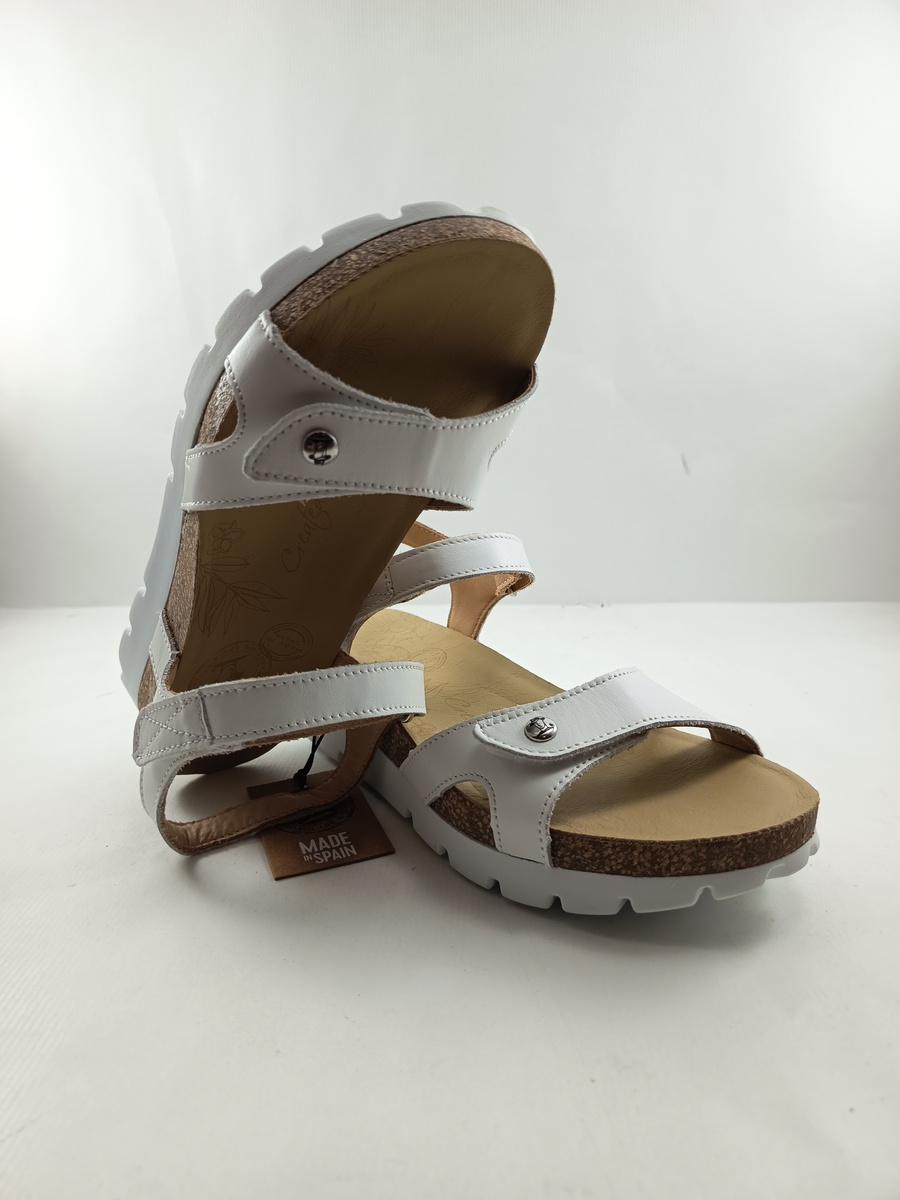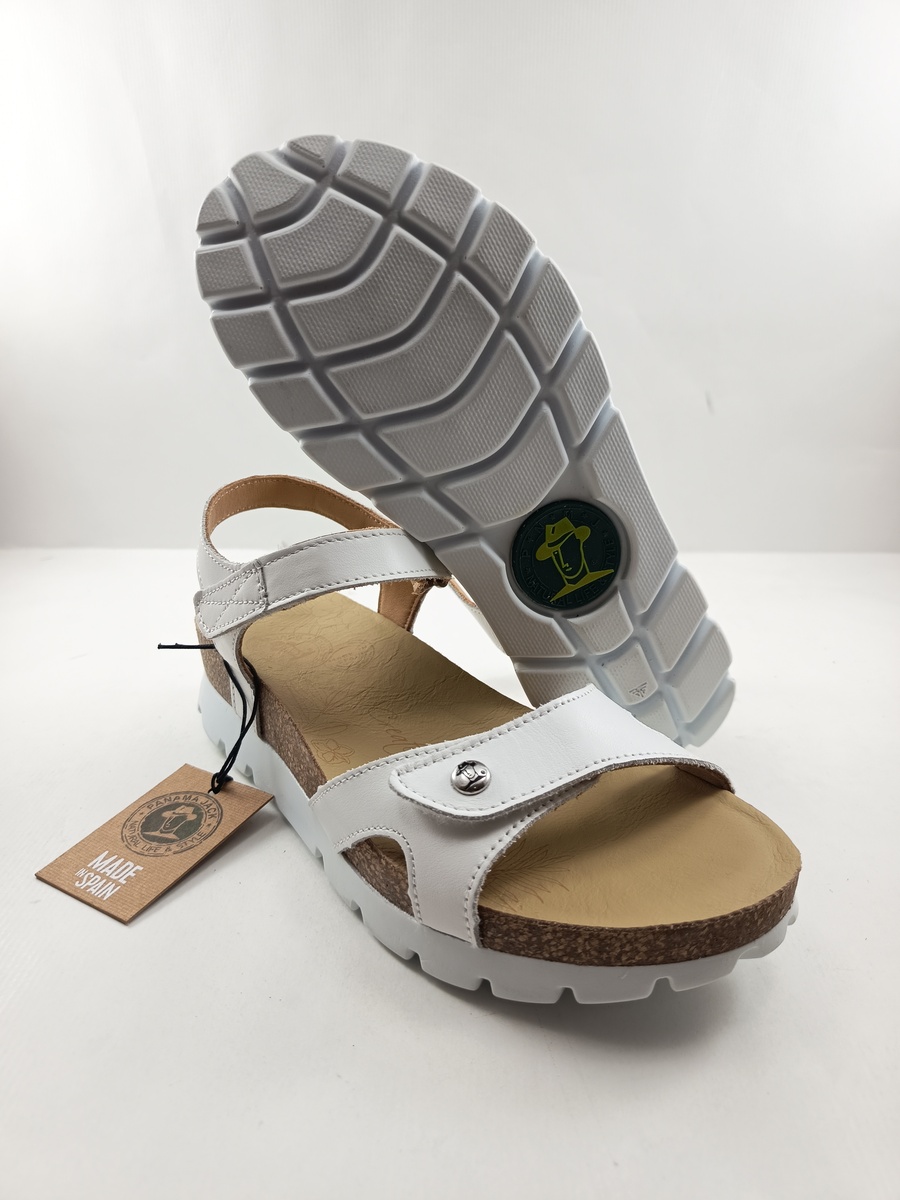 Sandalia de piel blanca con cierre de velcros, Panama jack modl Sulia basics B1