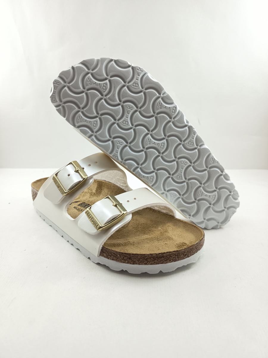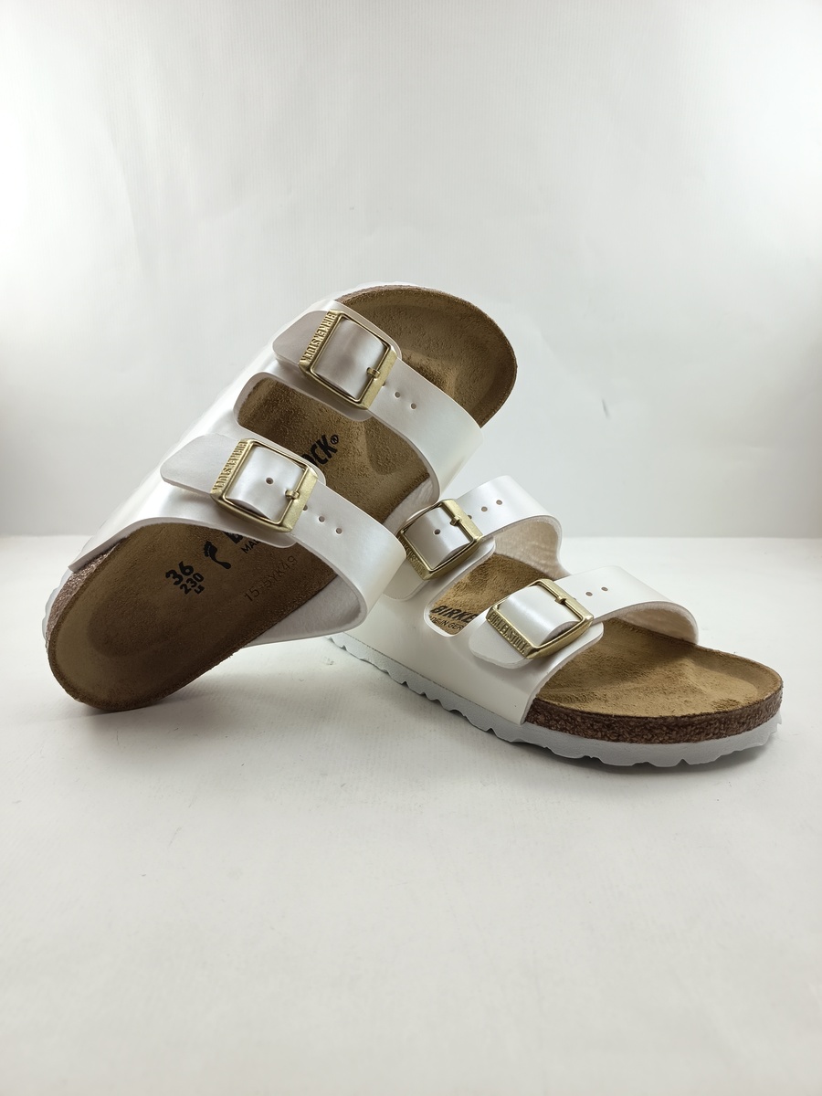 Sandalia de piel blanco perla con cierre de doble hebilla, Birkenstock mod. 1029456