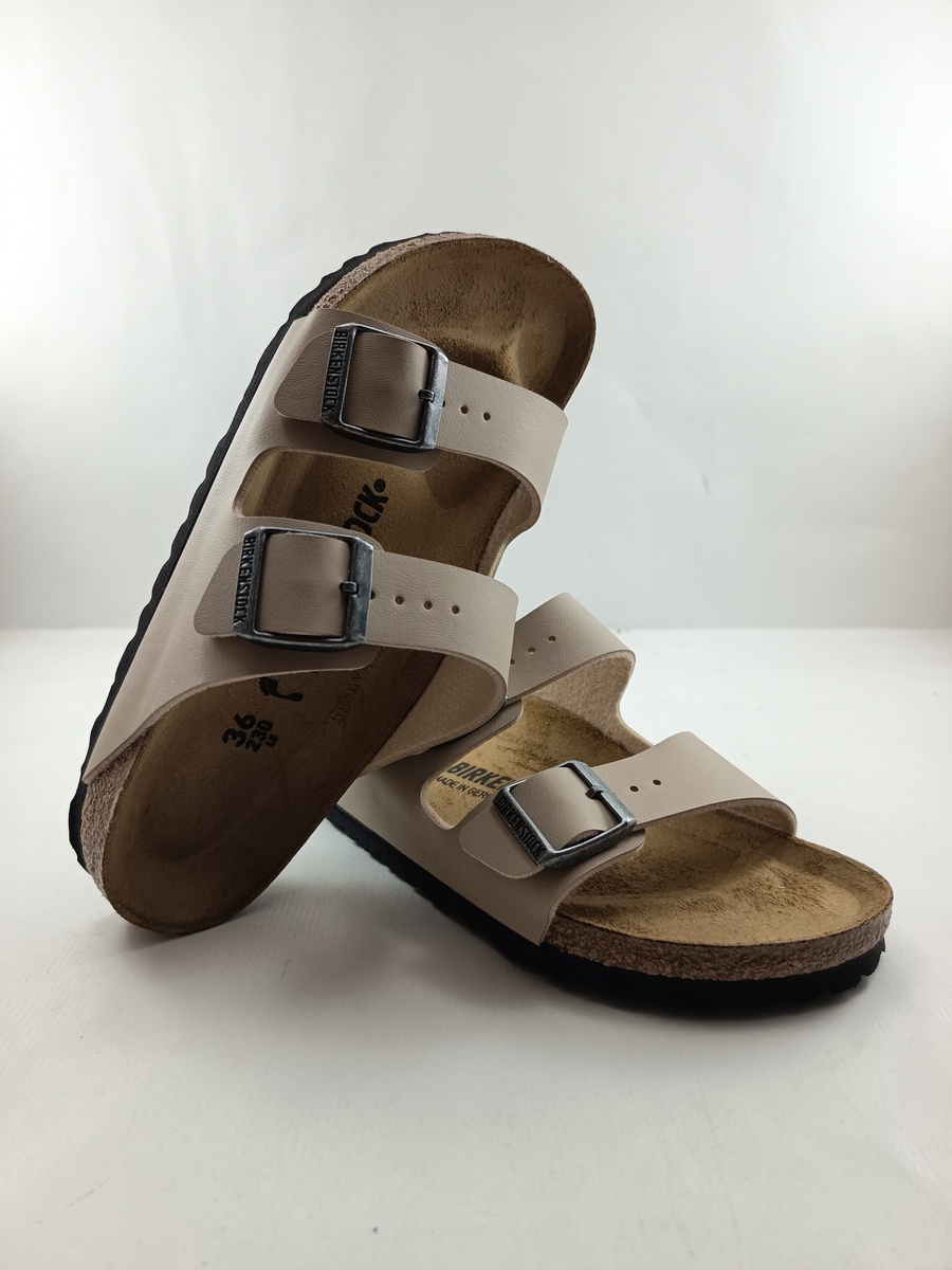 Sandalia de piel crema con cierre de doble hebilla, Birkenstock mod. 1031501