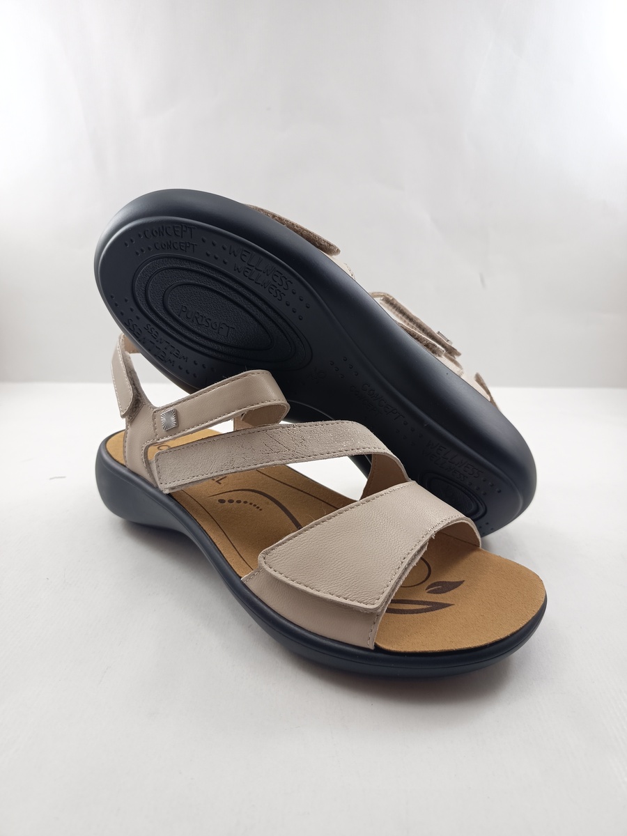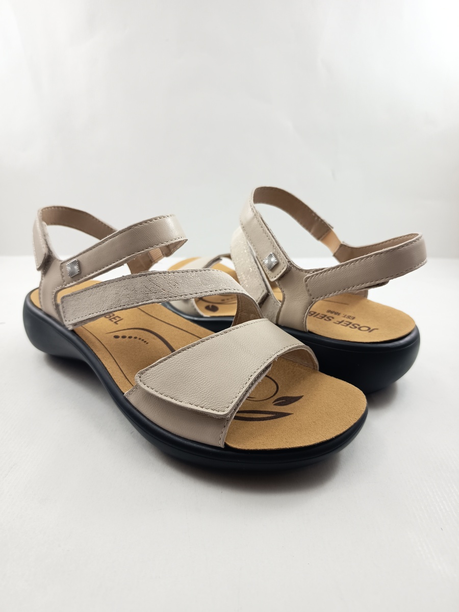 Sandalia de piel crema con cierrre de velcros, Josef sibel mod. 86702