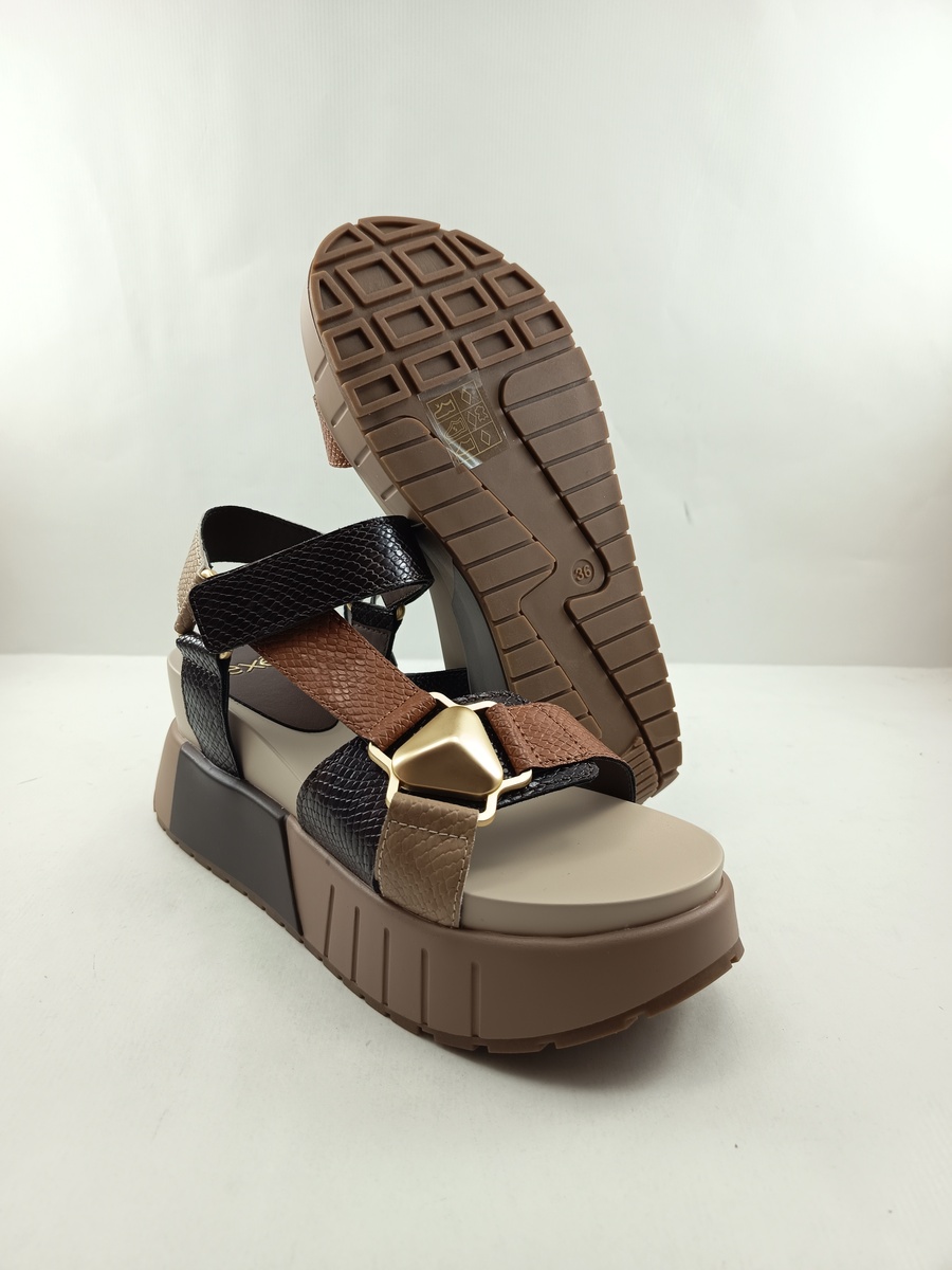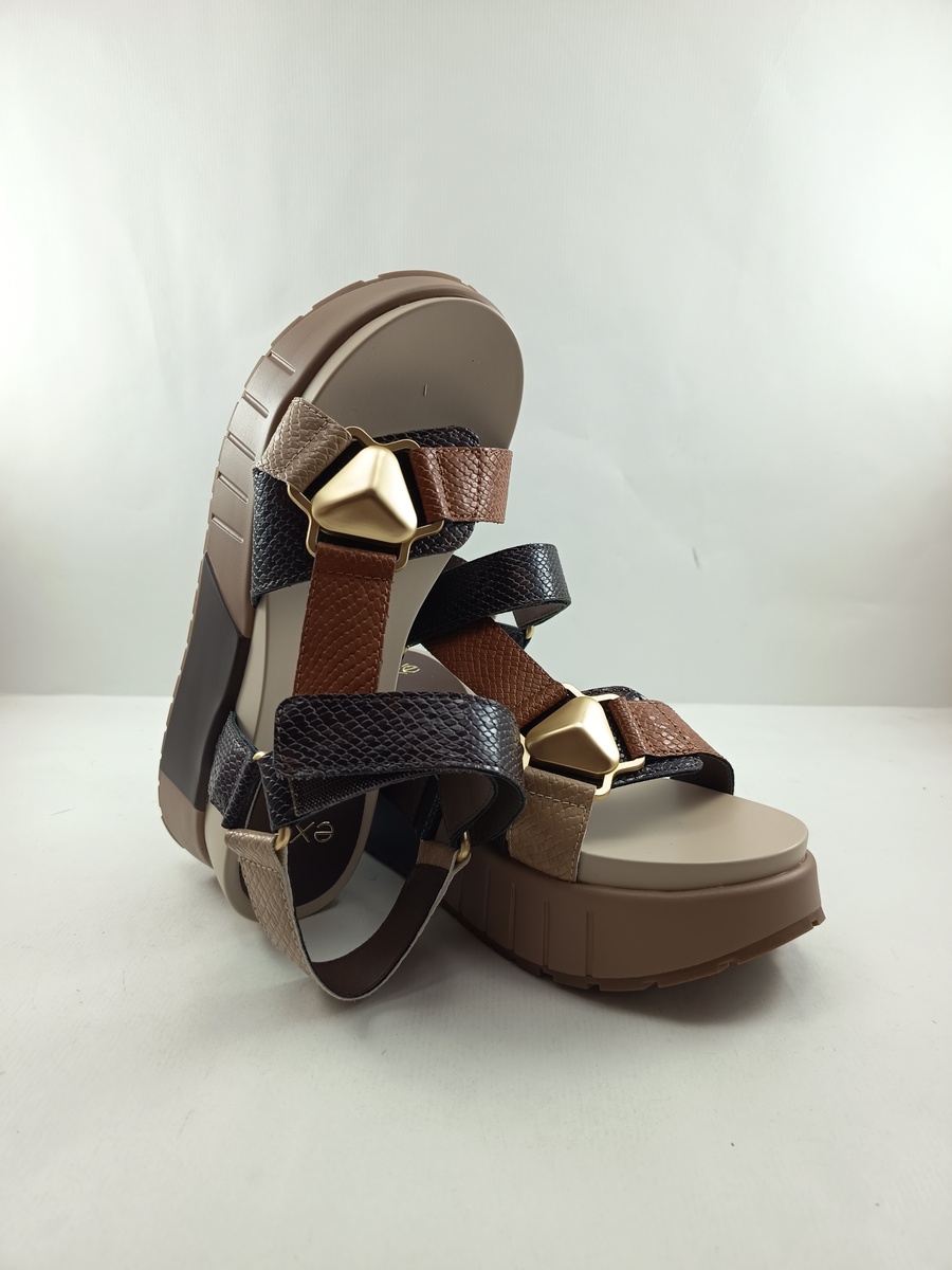 Sandalia de piel marron con cierre de velcro, Exé mod. Olivia 934
