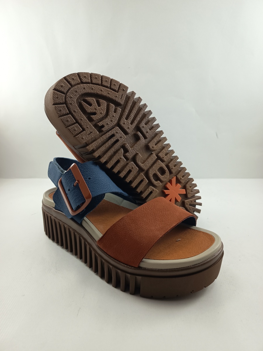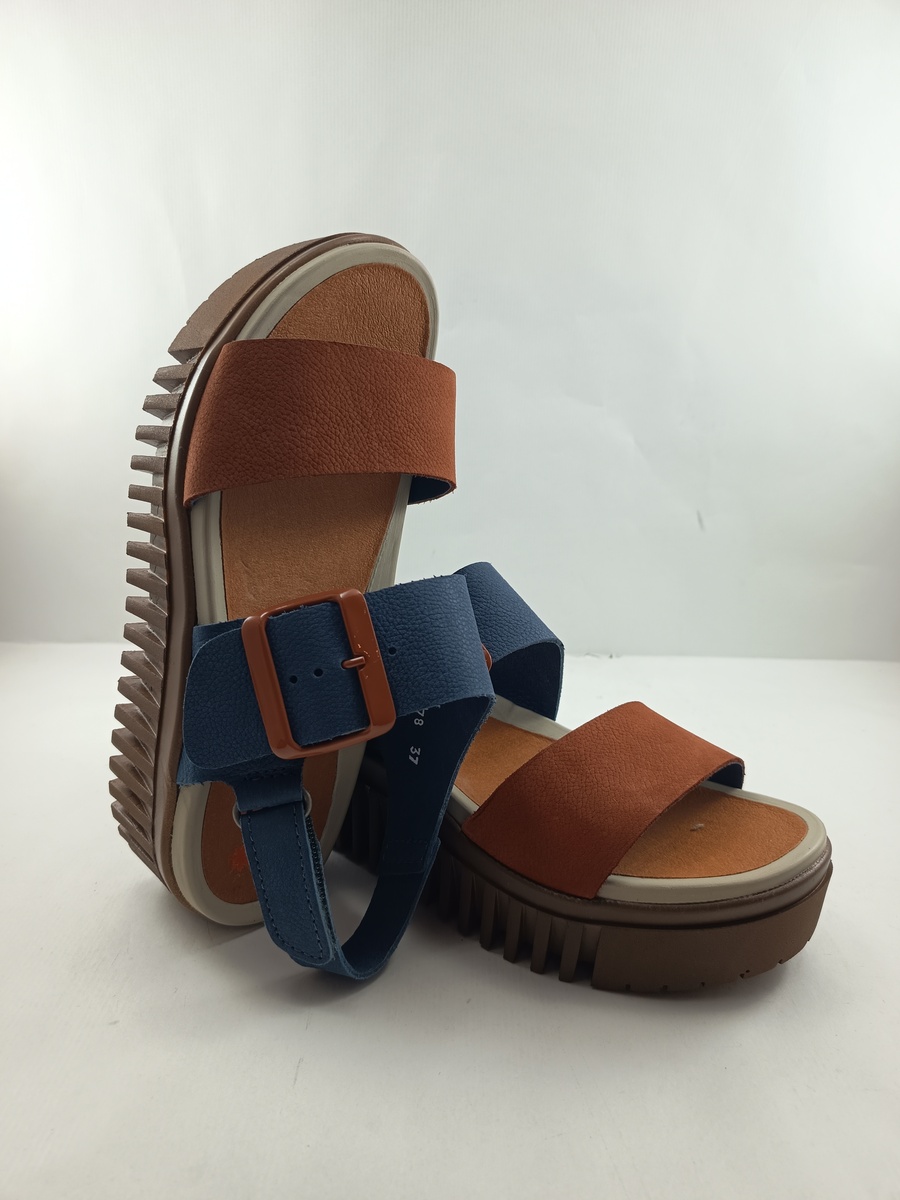 Sandalia de piel multicolor con cierre de hebilla en tobillo y suela de goma, forro de piel y plantilla de microfibra softlight no extraible, homa estandar.