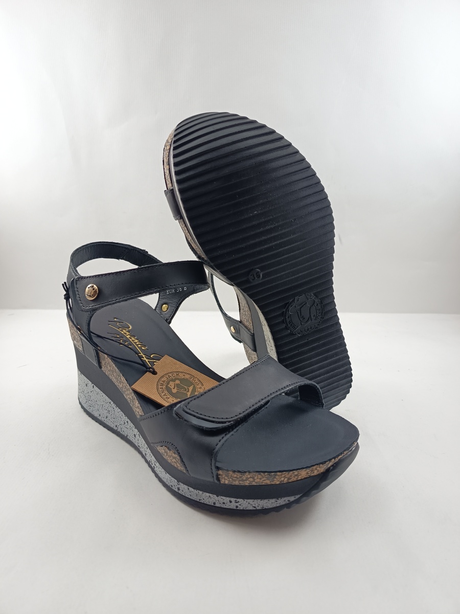 Sandalia de piel negra con cierre de velcro, Panama jack mod. Nicca sport b1