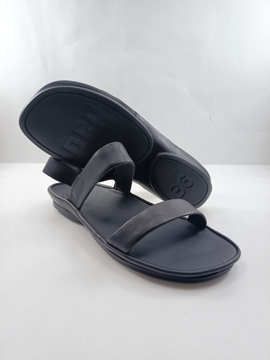 Sandalia de piel negra sin cierres y goma en talon, Camper mod. K201868