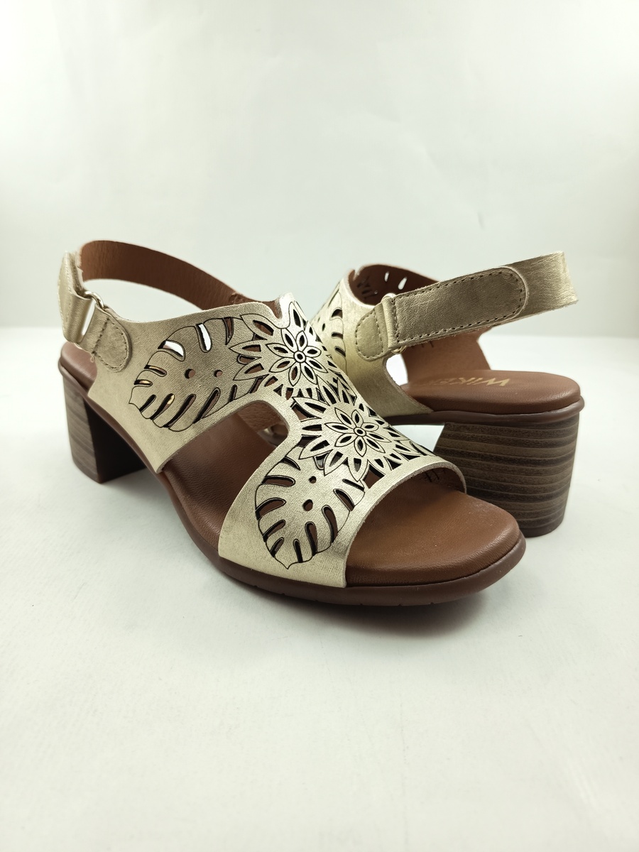 Sandalia de piel oro con cierre de velcro, Wickers mod. 111879