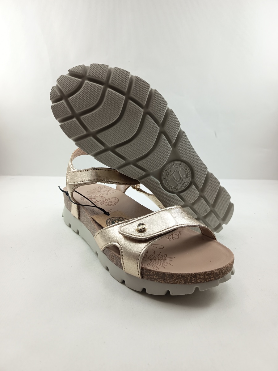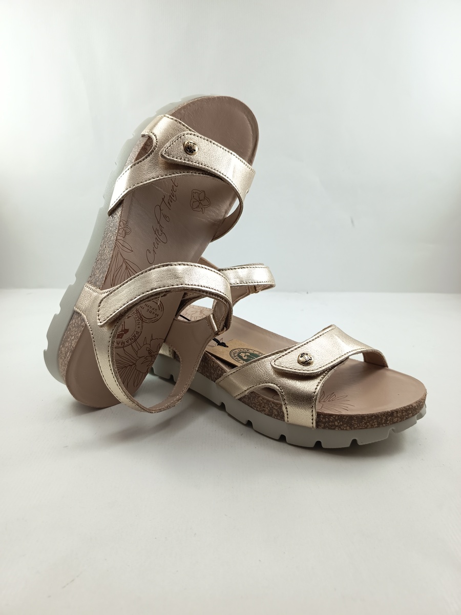 Sandalia de piel oro con cierres de velcro, Panama jack mod. Sulia B3