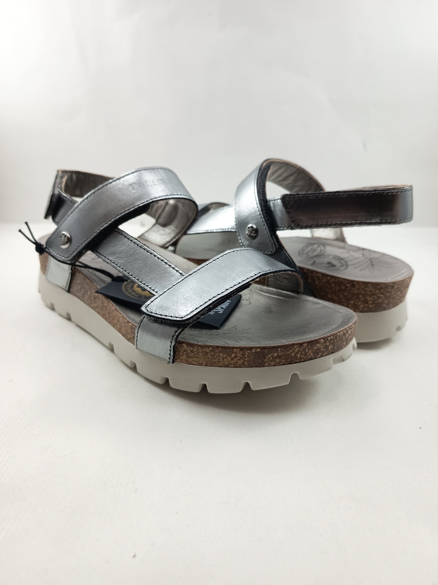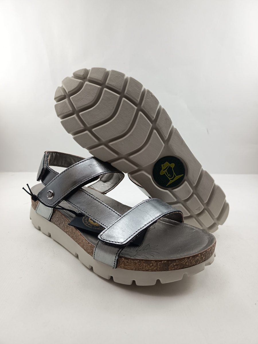 Sandalia de piel plata con cierre de velcros, Panama Jack mod. Selma Shine B4