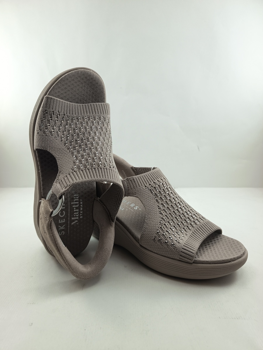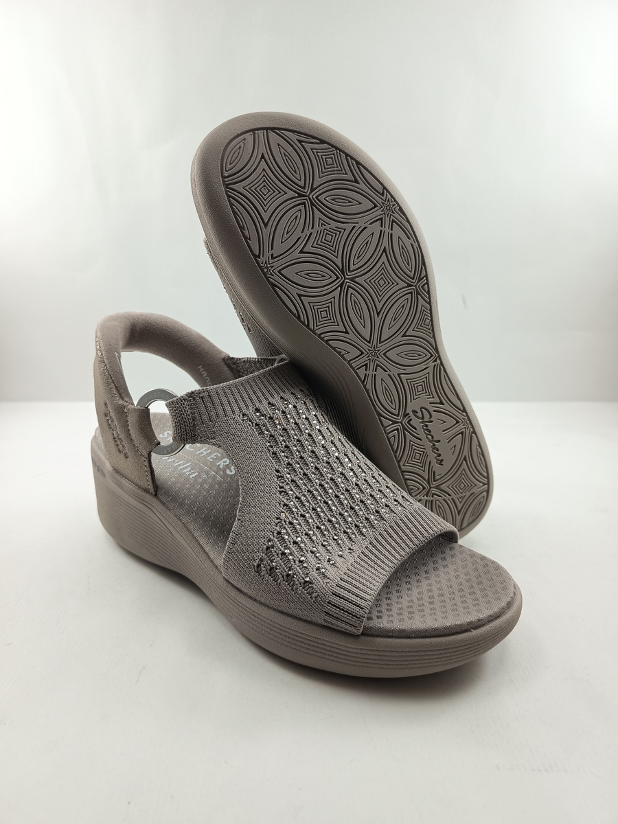 Sandalia sintetica camel sin cierres, modelo slipins, Skechers mod. 188001