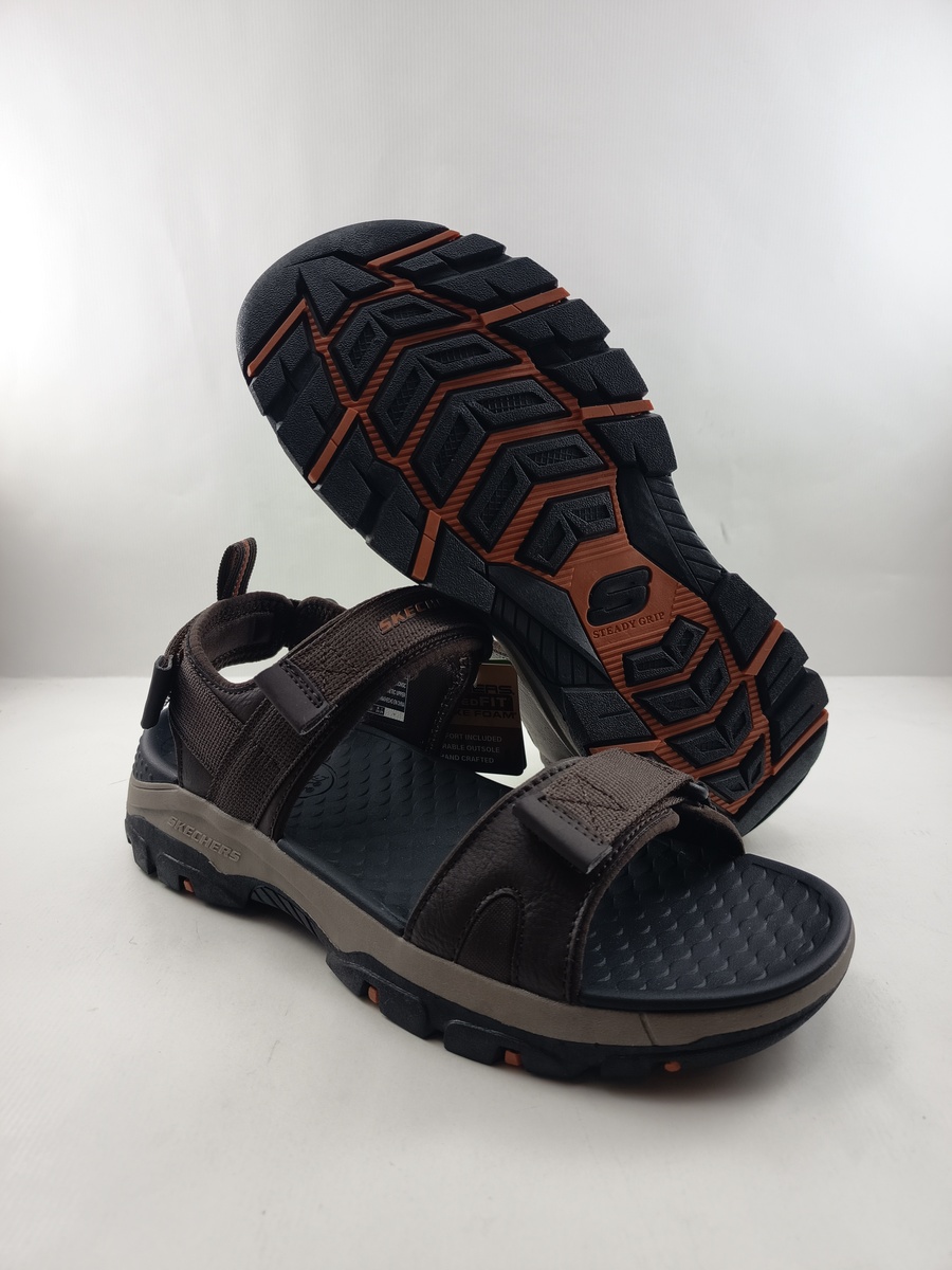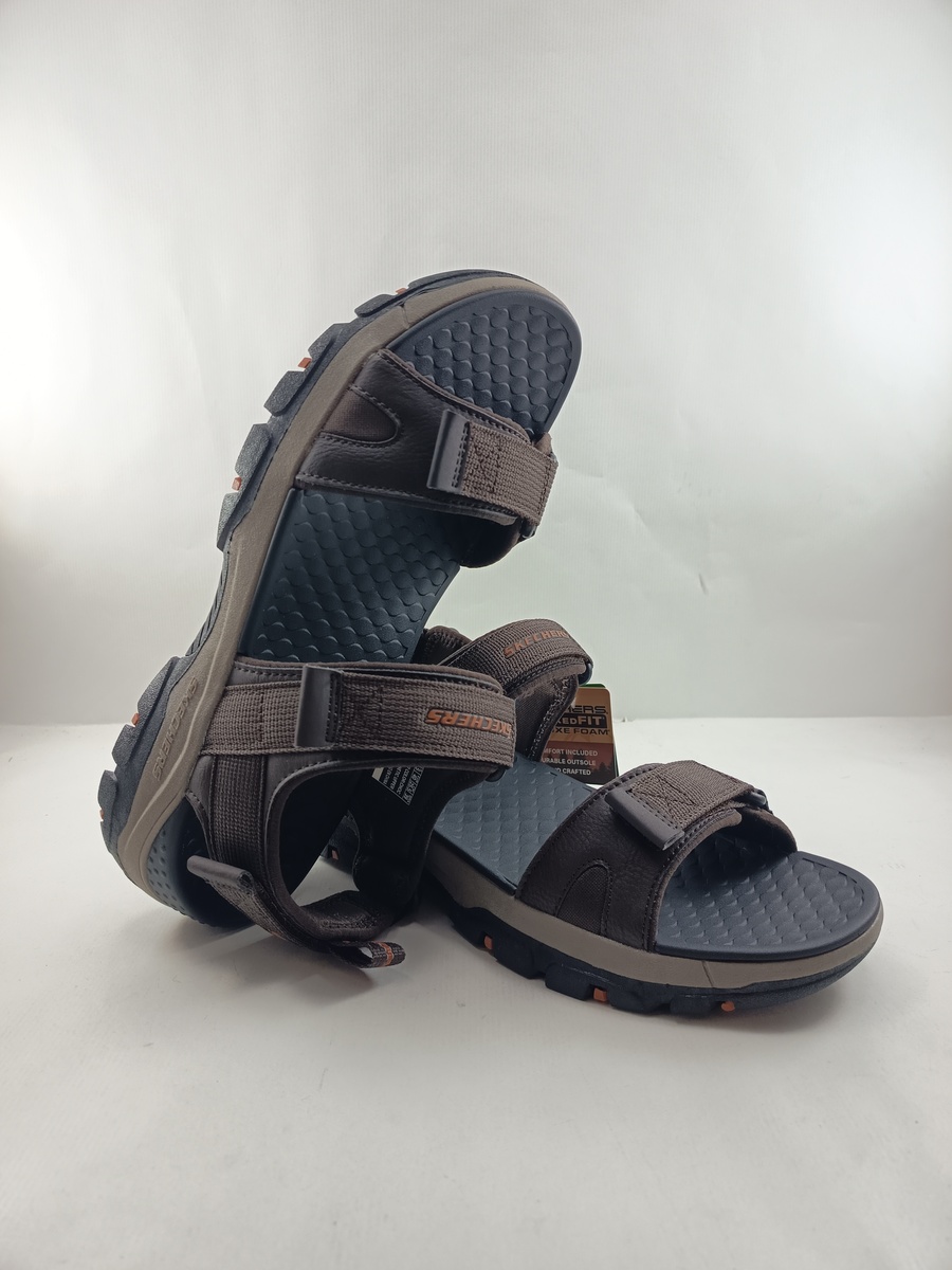 Sandalia sintetica marron con cierre de velcro, Skechers mod. 205112