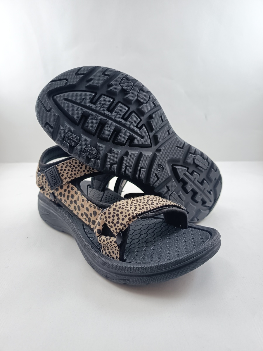 Sandalia sintetica multicolor con cierre de velcros y suela de goma, forro y plantilla textil, detalle de topos en toda ella.