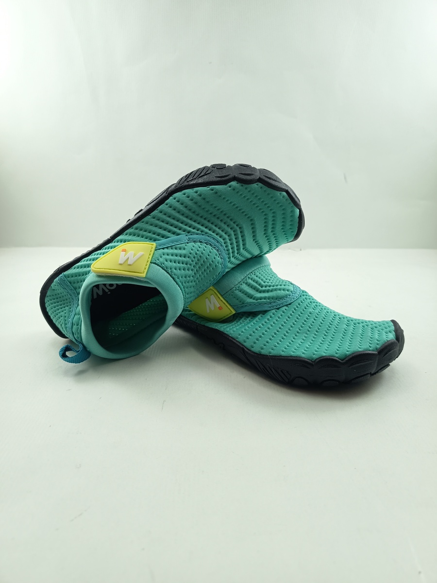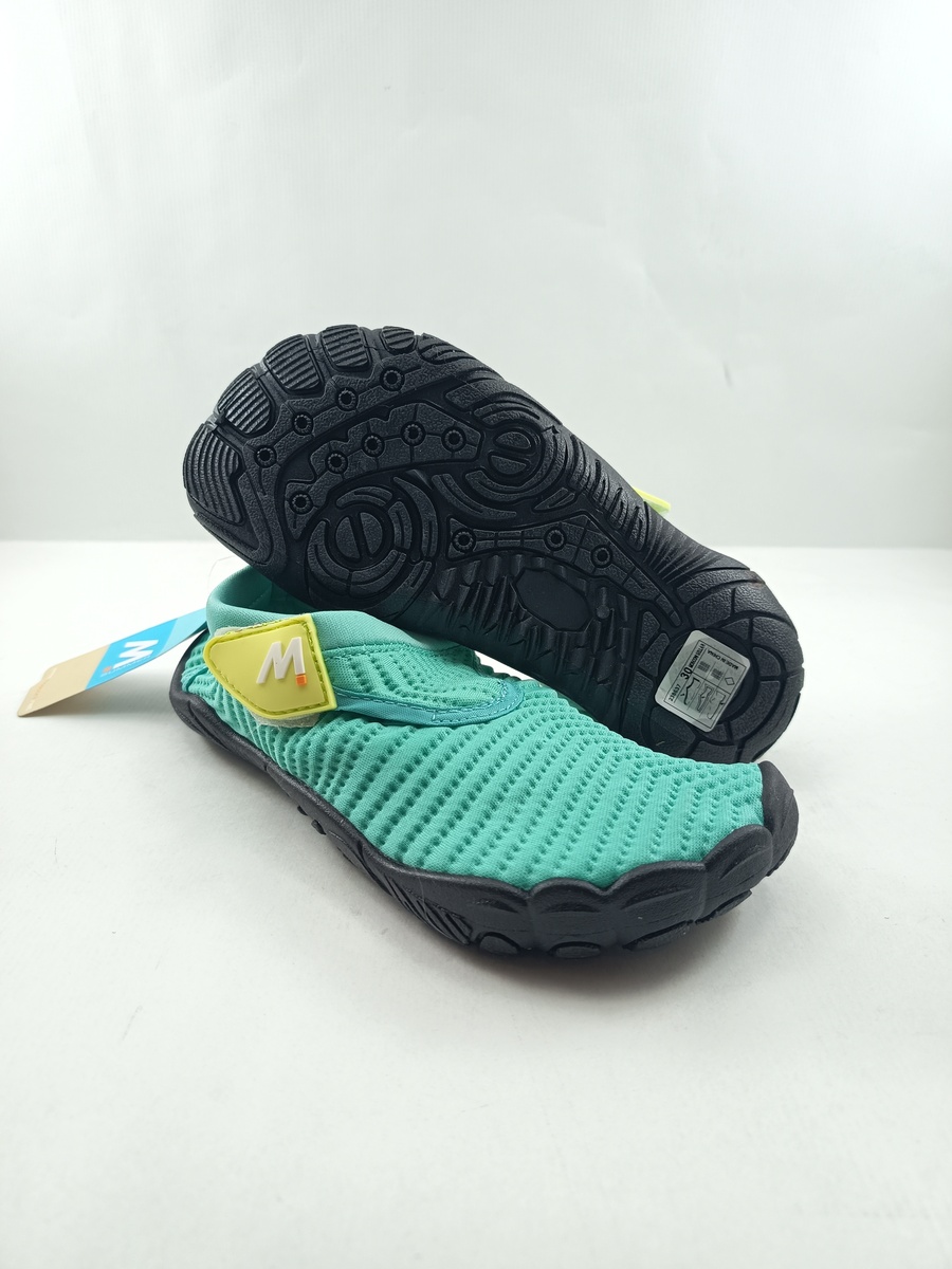 Scarpin sinetico verde con cierre de velcro y suela de goma.