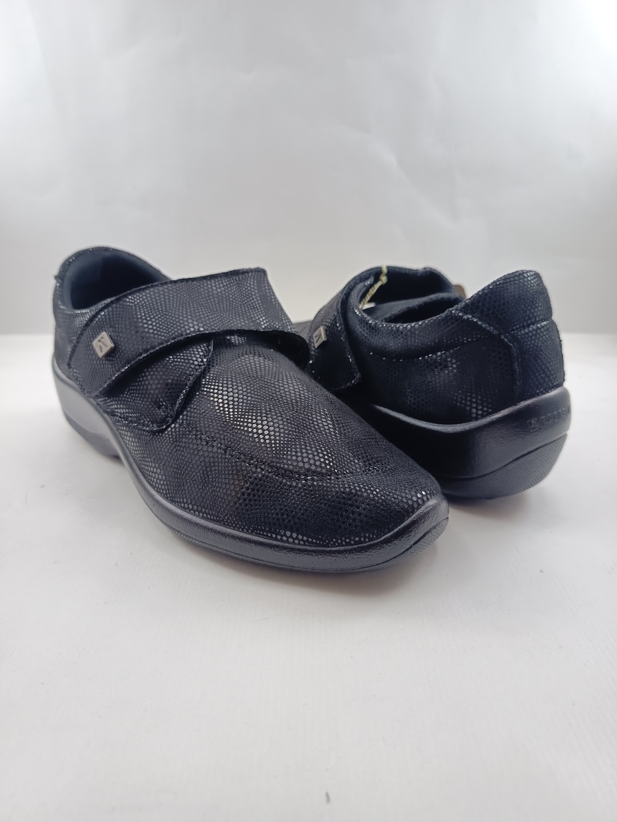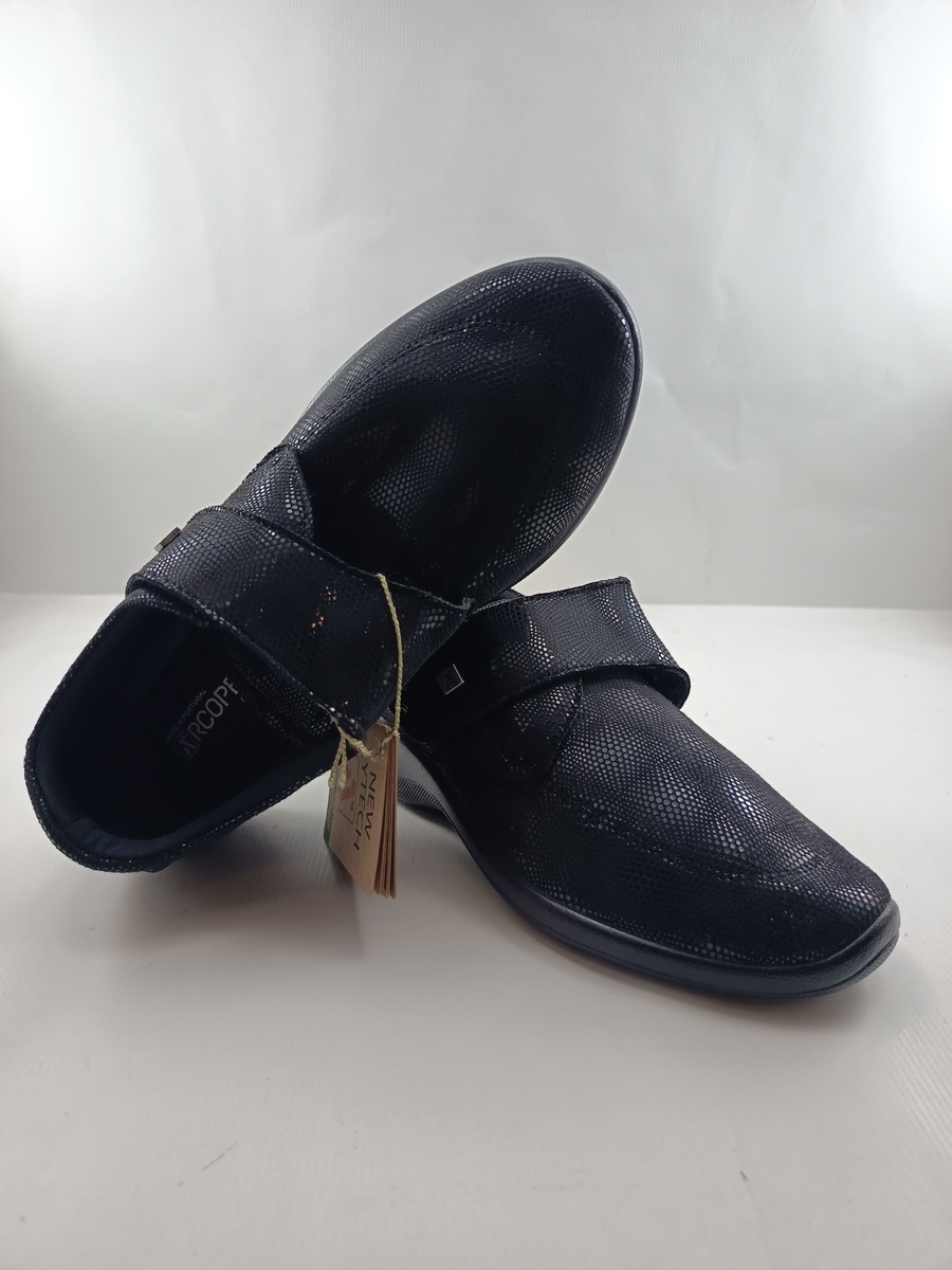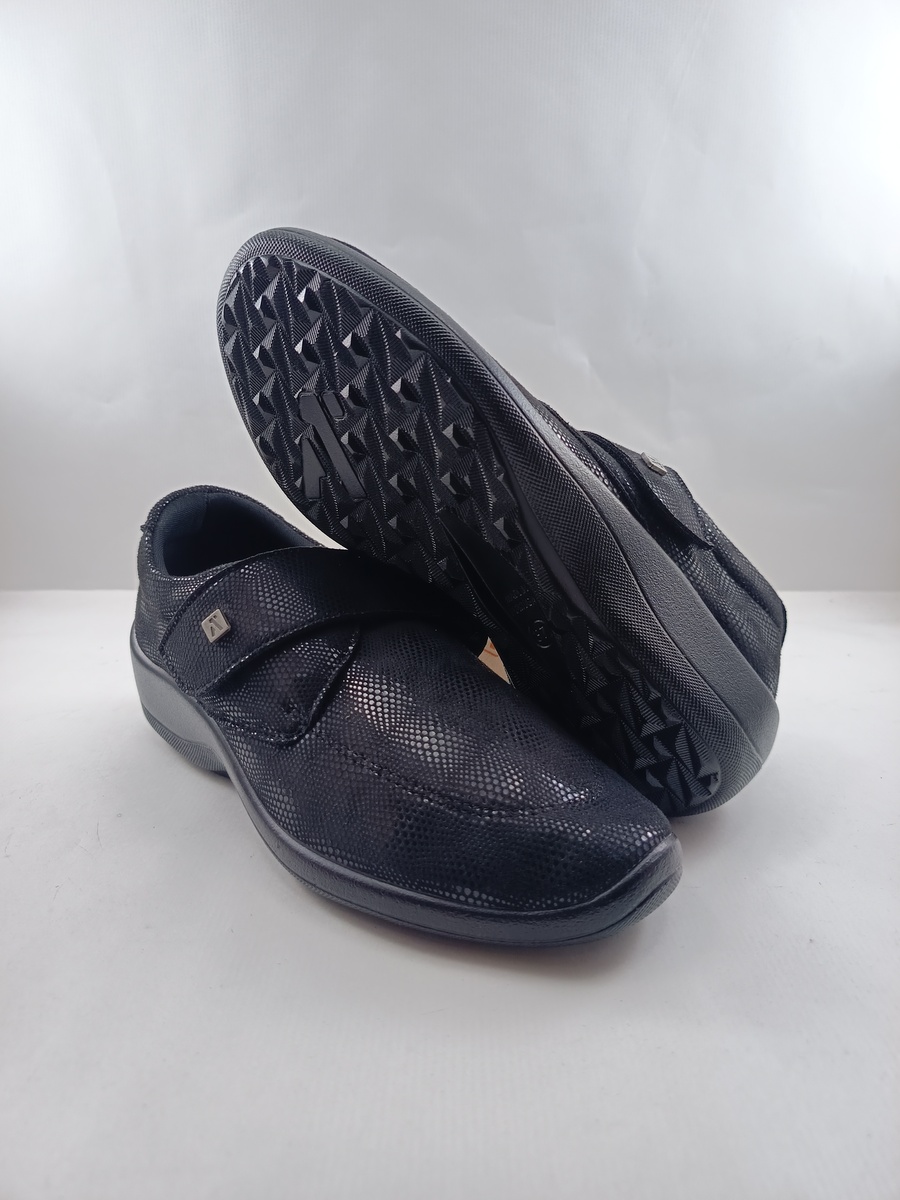 Semi-sport abotinado de piel negra con cierre de velcro, A’rcopedico mod. 4626