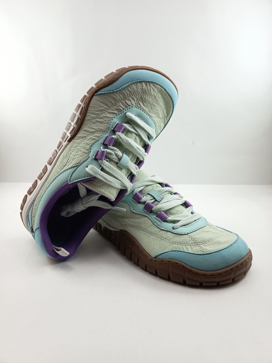 Semi-sport barefoot de piel crema con cierre de cordon elastico, suela fina y plana con drop cero para una pisada natural y una mejor alineacion de la espalda, horma ancha y anatomica para evitar deformaciones, ligeros y comodos, sin contrafuerte y plantilla extraible.