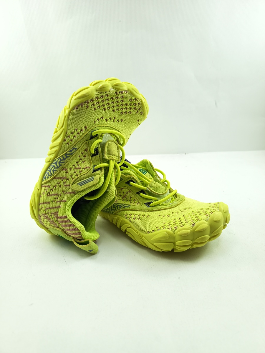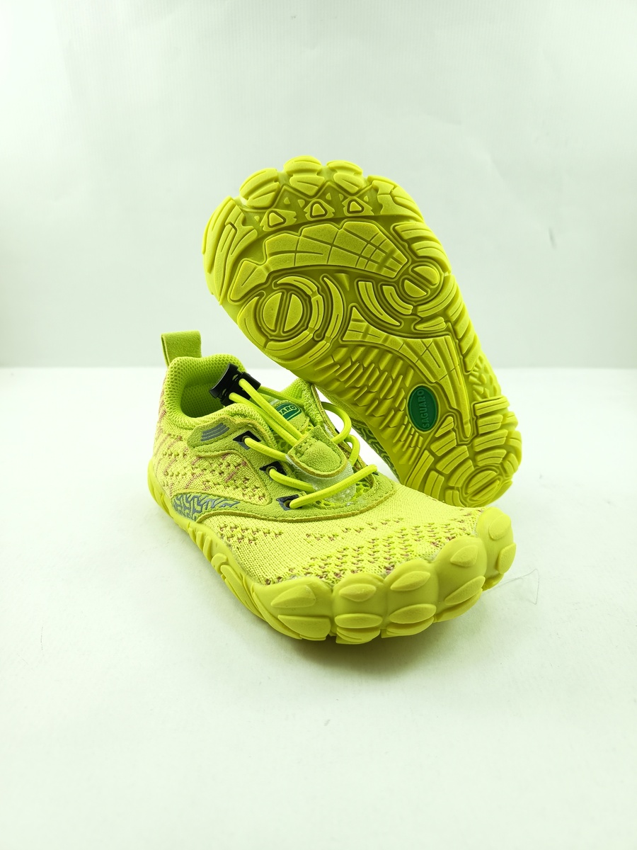 Semi-sport barefoot sintetico amarillo con cierre de cordon y suela de goma, plantilla textil, drop 0.