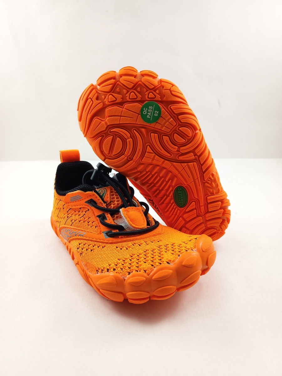 Semi-sprot barefoot sintetico naranja con cierre de cordon y suela de goma, plantilla textil, drop 0.