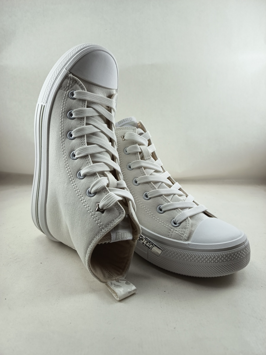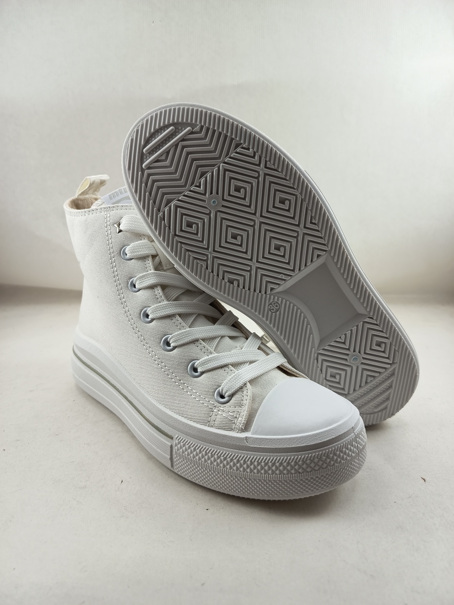Semi-sport de lona blanco alto con cierre de cordon y suela de goma, forro y plantilla textil, detalle tiro alto.