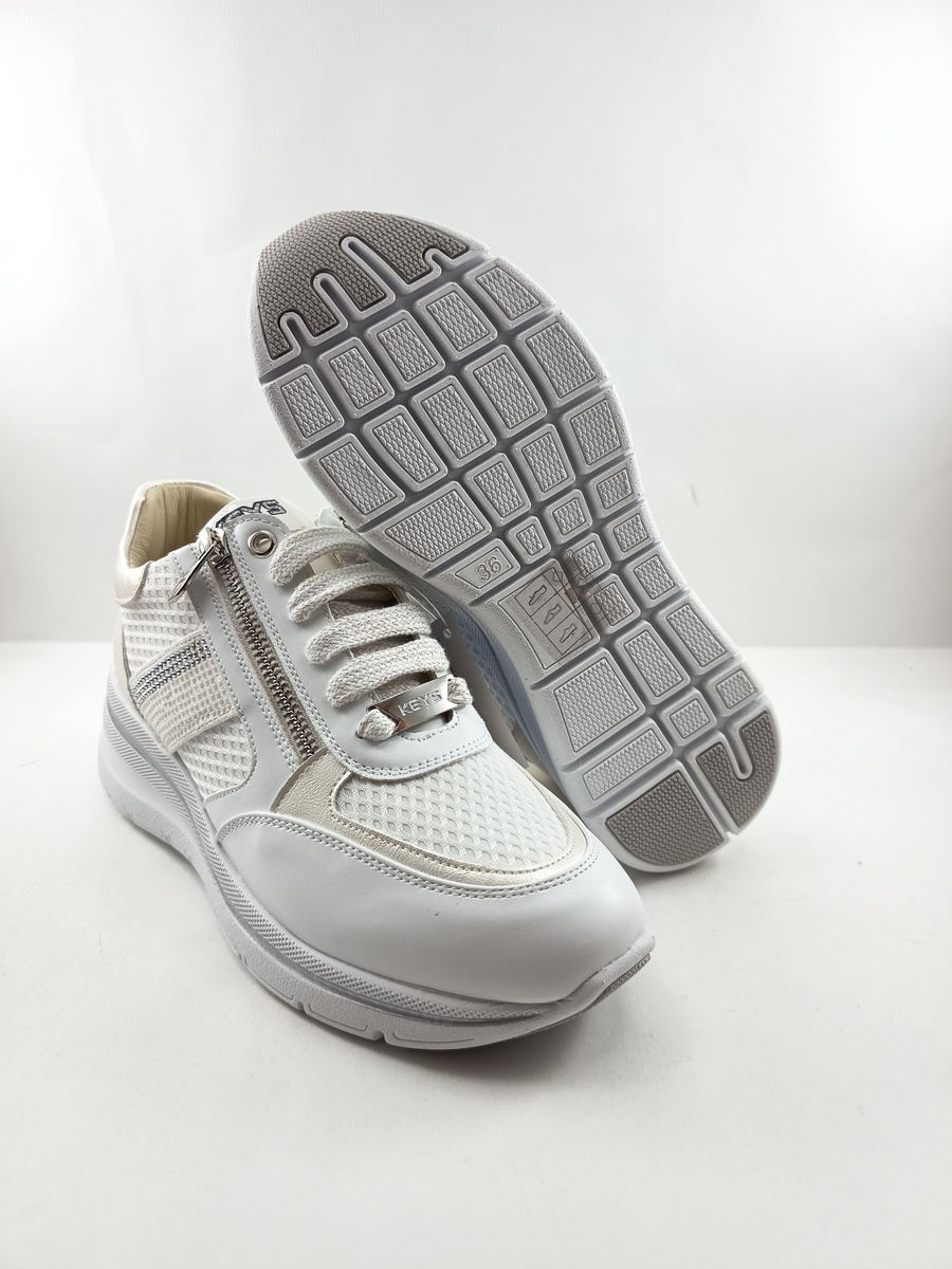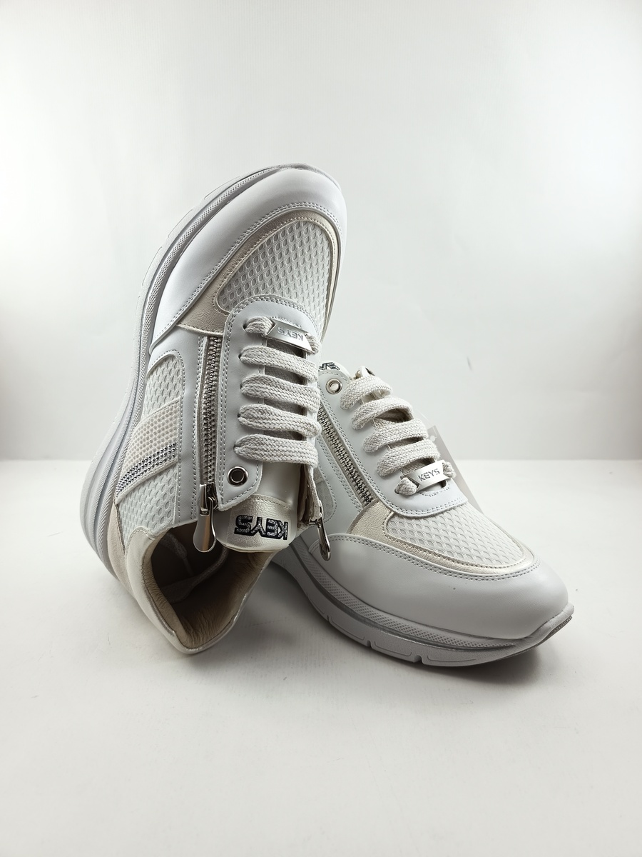 Semi-sport de piel blanco con cierre de cordon y cremallera, Keys mod. 11910