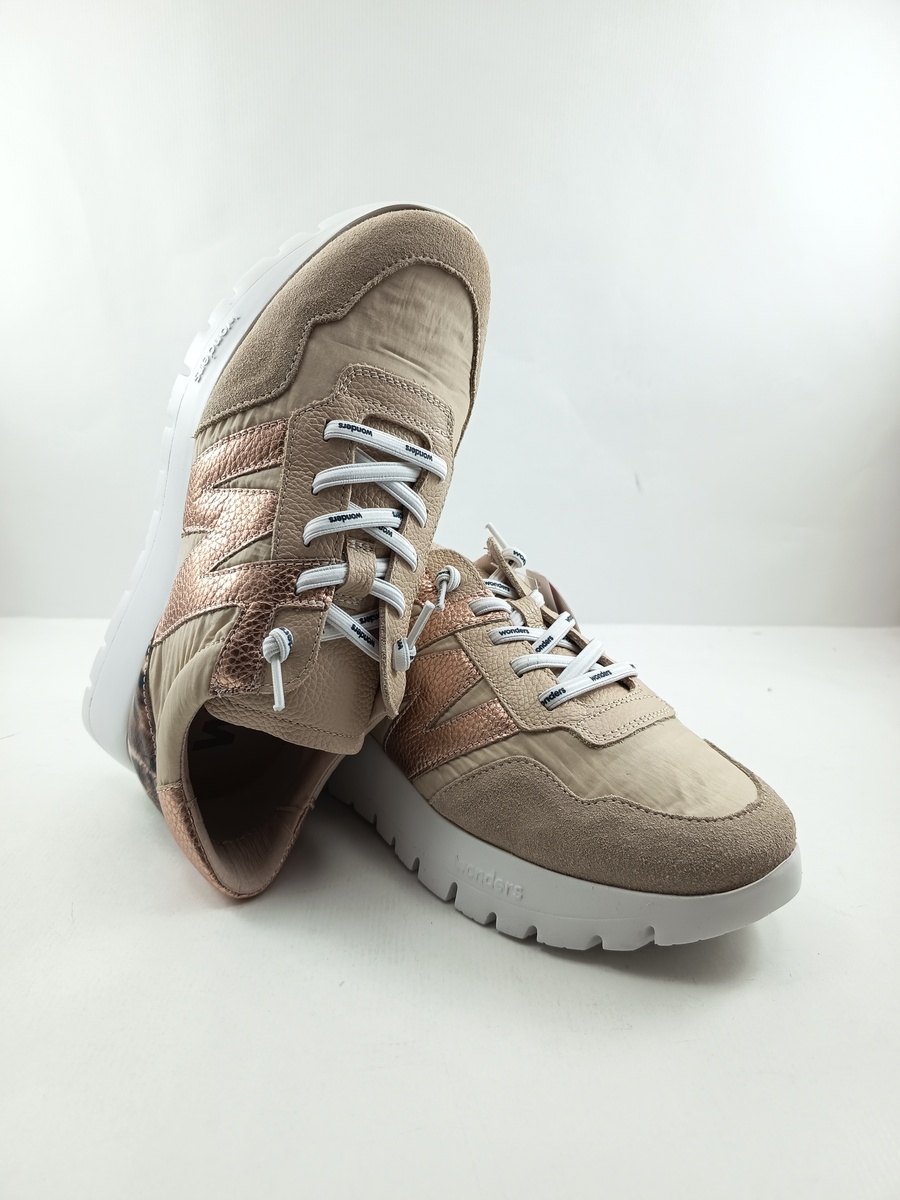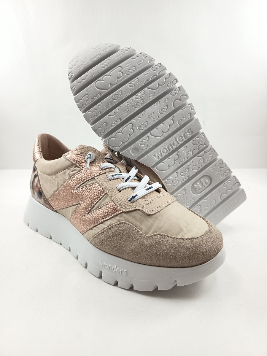 Semi-sport de piel crema con cierre de cordon elastico, Wonders mod. 24100