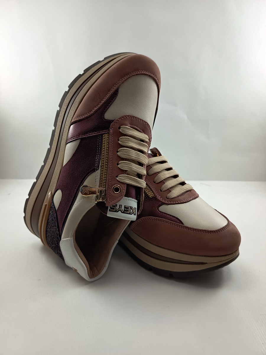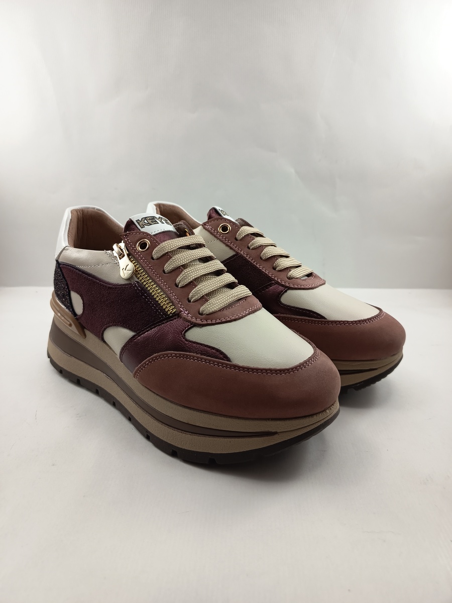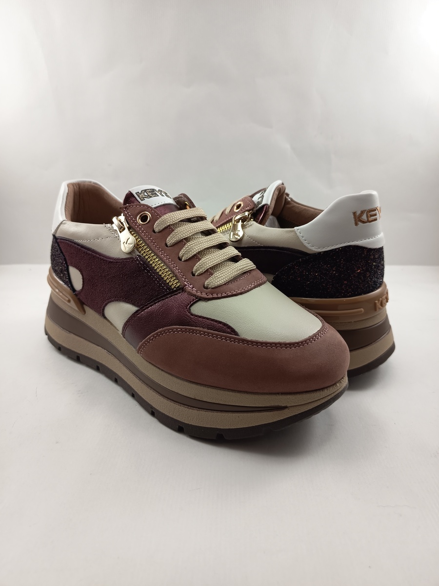 Semi-sport de piel granate con cierre de cordon y cremallera, Keys mod. 11230