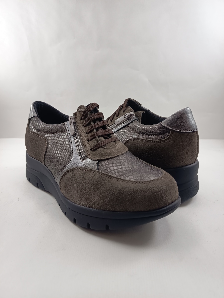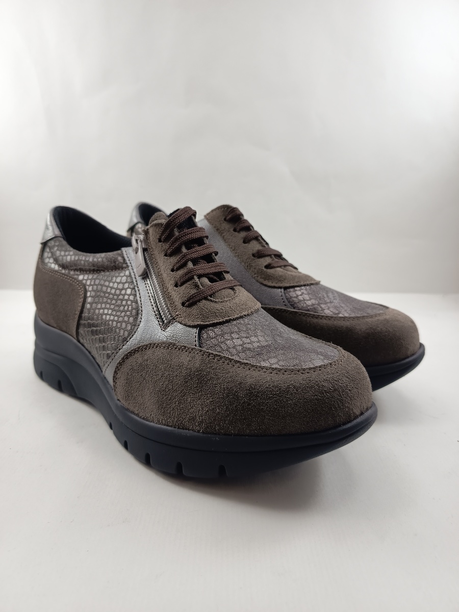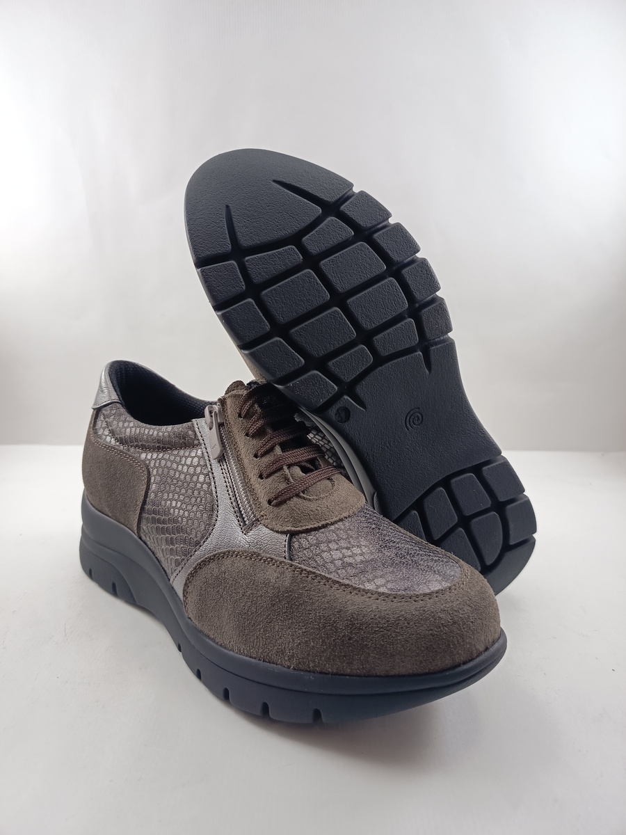 Semi-sport de piel gris con cierre de cordon y cremallera, Pinoso’s mod. 8312H