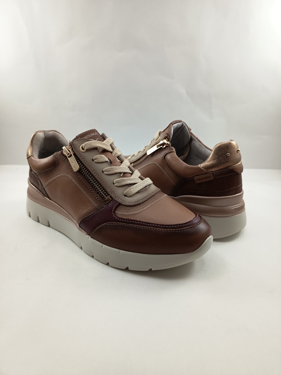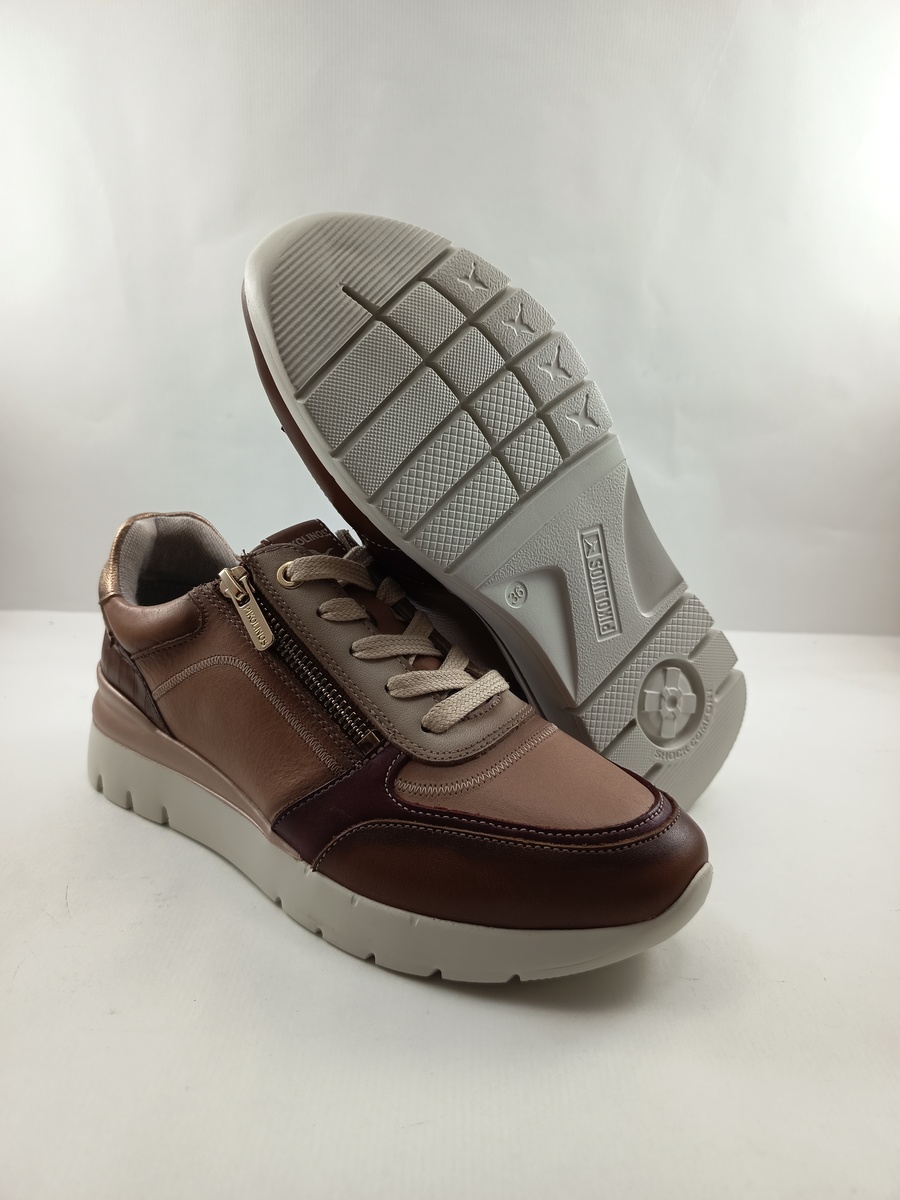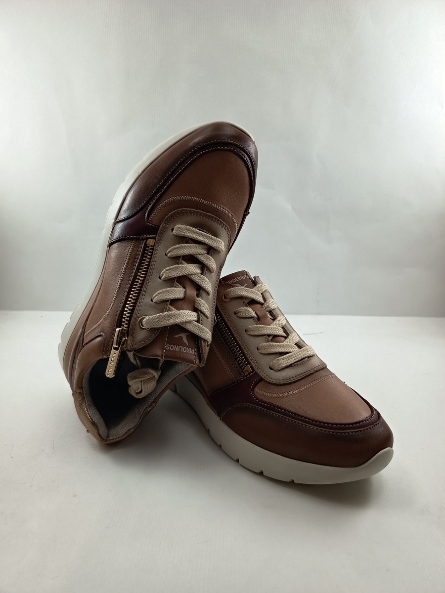Semi-sport de piel marron con cierre de cordon y cremallera, Pikolinos mod. 6524C3