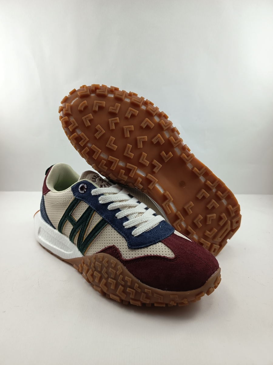 Semi-sport de piel multicolor con cierre de cordon y suela de goma, forro y plantilla textil.