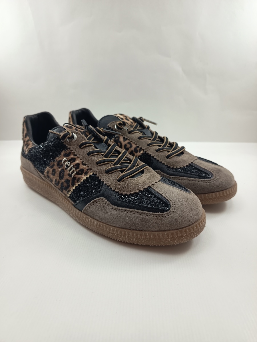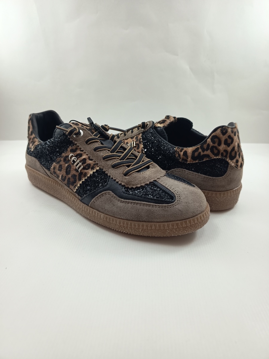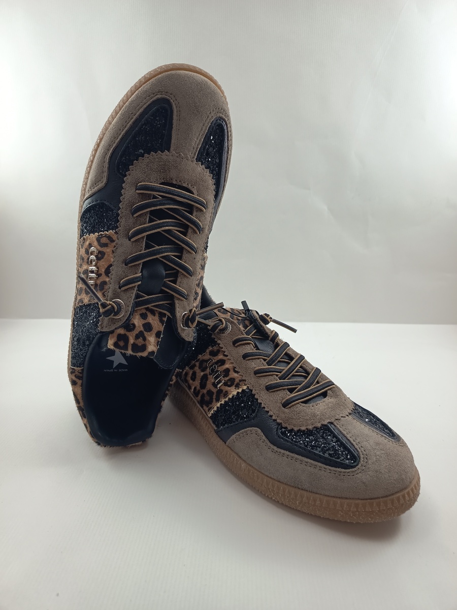 Semi-sport de piel negra con cierre de cordon elastico, Cetti mod. 1395
