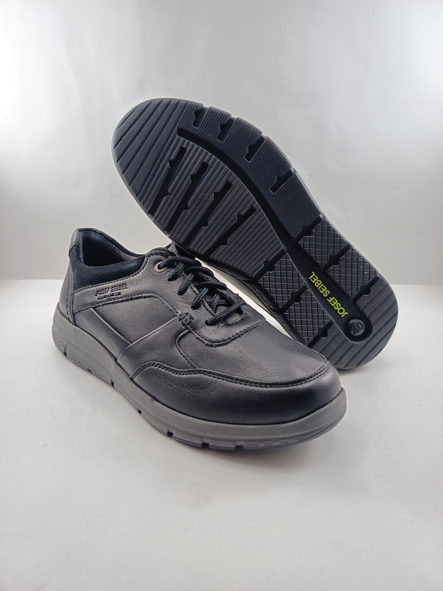 Semi-sport de piel negra con cierre de cordon, Josef seibel mod. 57412